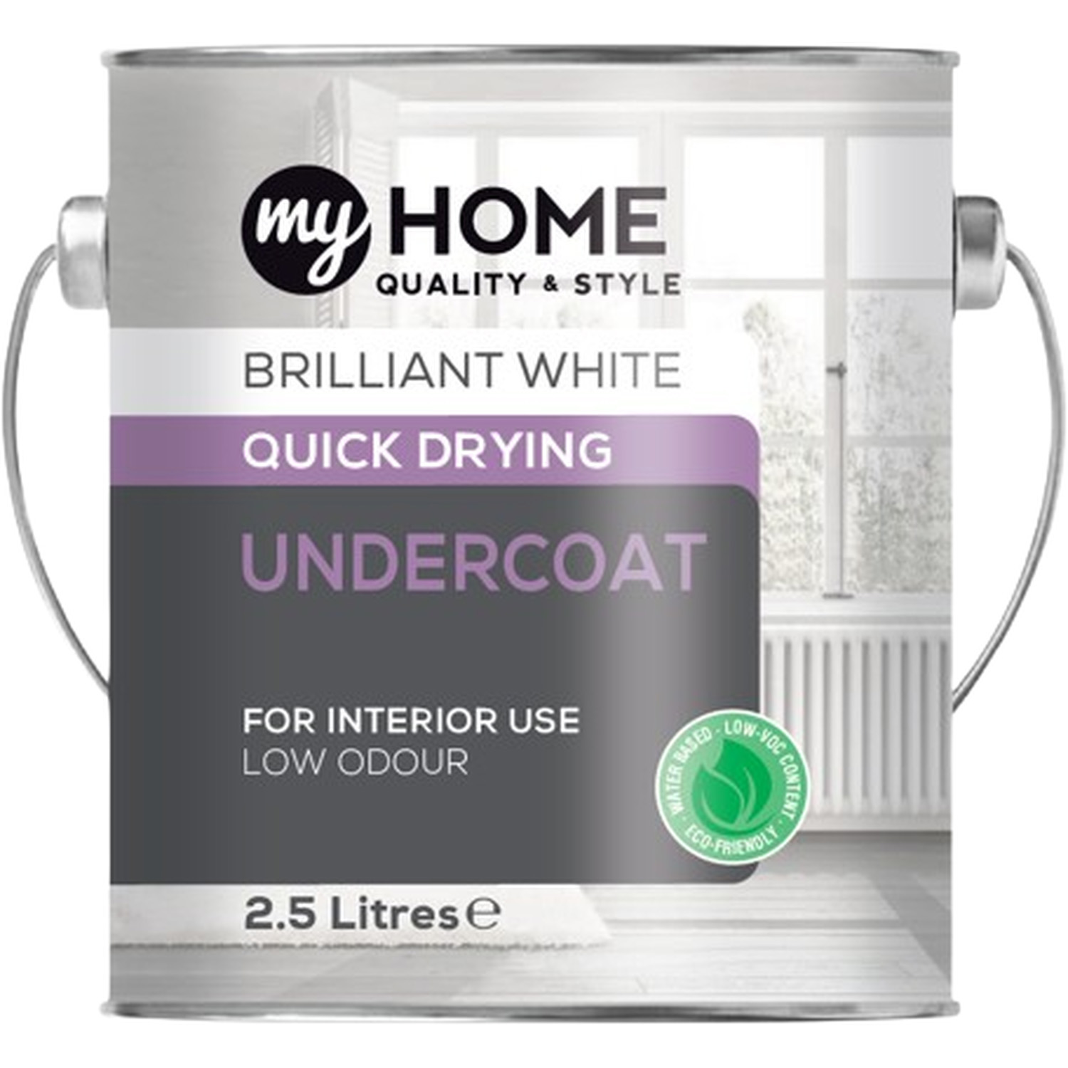 This tin of My Home Quick Drying Undercoat is a quality, non-yellowing alternative to conventional oil-based undercoat. It is durable, easy to use, suitable for use on interior wood and primed metal, and, because it is water-based, it is LOW VOC and eco-friendly.