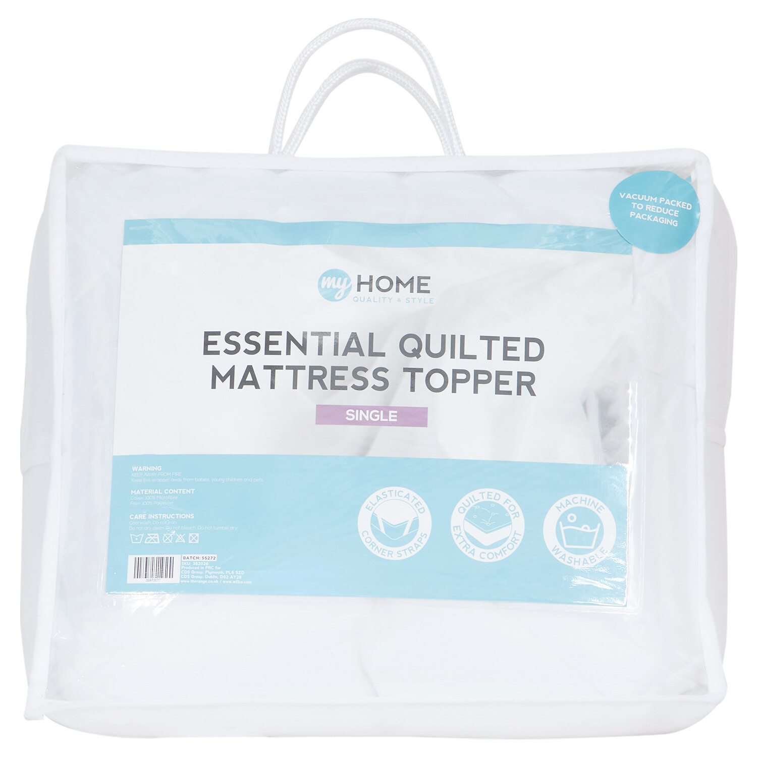 Enhance your sleep with the My Home Quilted Mattress Topper. It features a soft, quilted surface that provides extra cushioning, helping you enjoy a more restful night's sleep. The elasticated corner straps ensure a secure fit, keeping it in place throughout the night.