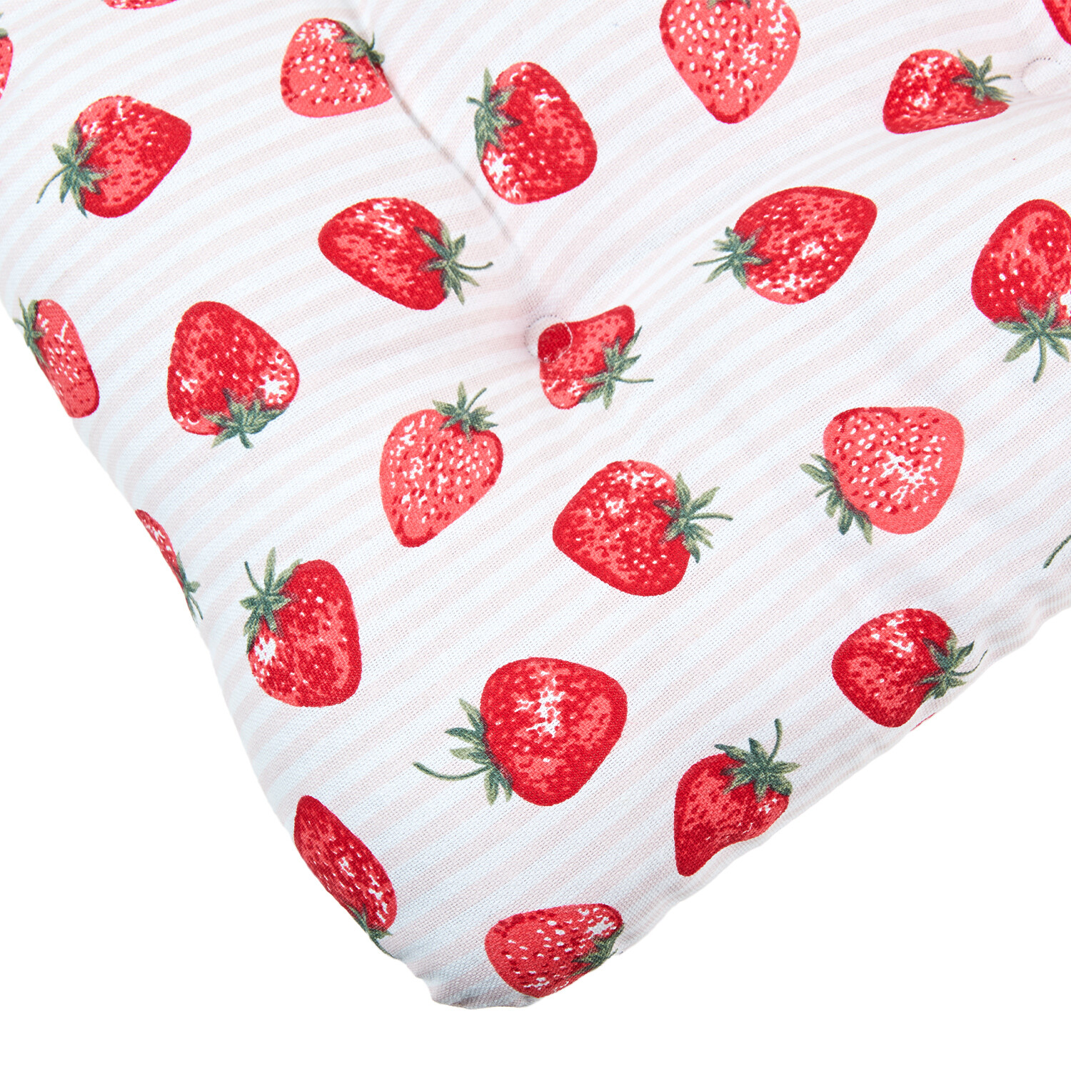 Super cute and perfect for spring, summer, and beyond, this Strawberry Seat Pad is a great way to bring a splash of colour into your kitchen or dining space. The comfortable seat cushion features a pinstripe background with juicy strawberries printed over the top for a bright and engaging feel. It's ideal for breathing new life into your old dining chair, making them more comfortable. They're also easy to attach to your chair with the convenient ties.