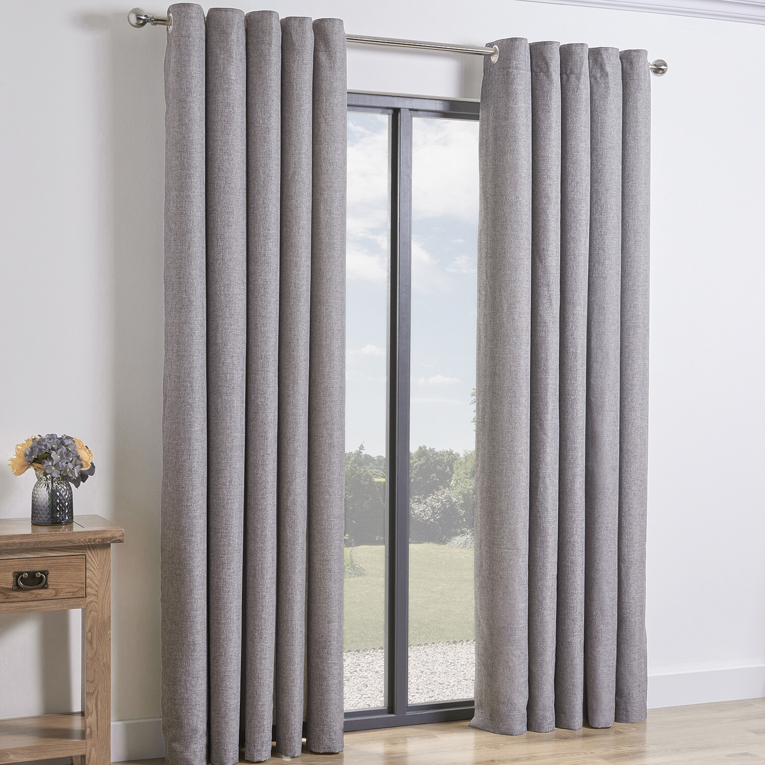 Fashioned from thick, textured fabric, the Taylor Blackout Eyelet Curtains are a modern and effective way to block out light from your living space or bedroom. Hanging in sleek, loose waves from easy-to-hang eyelets, these curtains are presented in a modern grey tone and will effortlessly lend themselves to any surrounding dcor, helping you get a great night sleep.