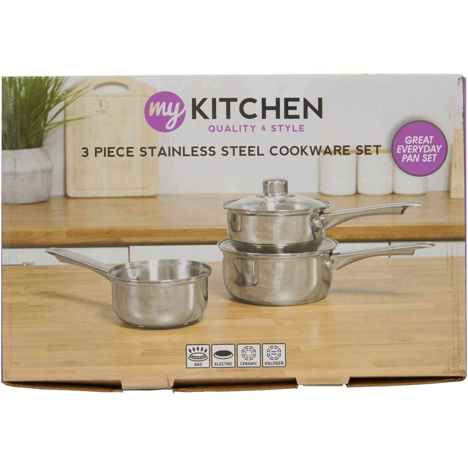 My Kitchen 3 Piece Stainless Steel Cookware Set - Chrome