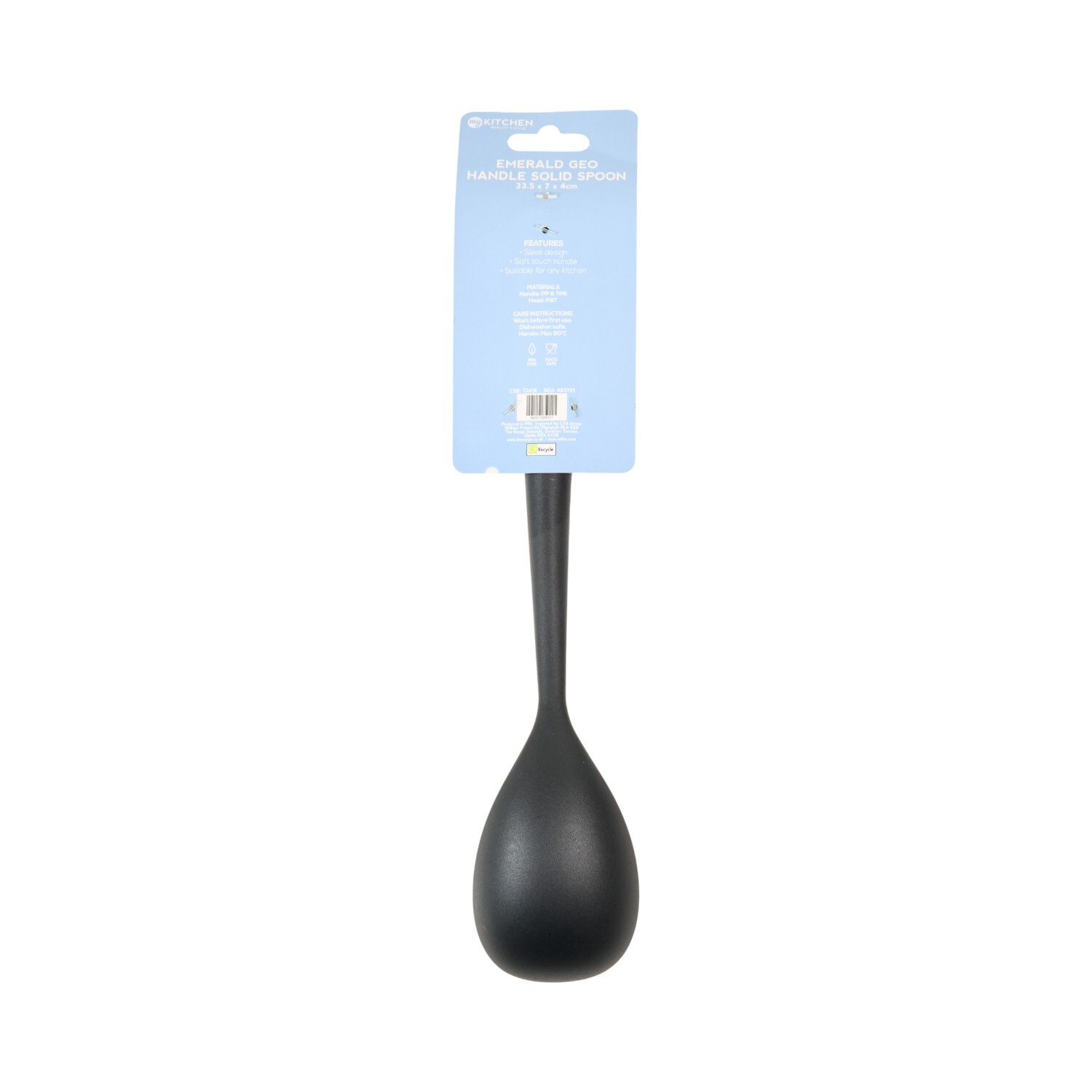 Add style and functionality to your kitchen with the My Kitchen Emerald Geo Handle Solid Spoon. Featuring a smooth texture, this spoon is great for cooking and serving. The ergonomic and comfortable handle makes it easy to use, while the deep green colour adds a touch of elegance to your kitchen. This spoon is also dishwasher safe, offering efficiency and low maintenance.