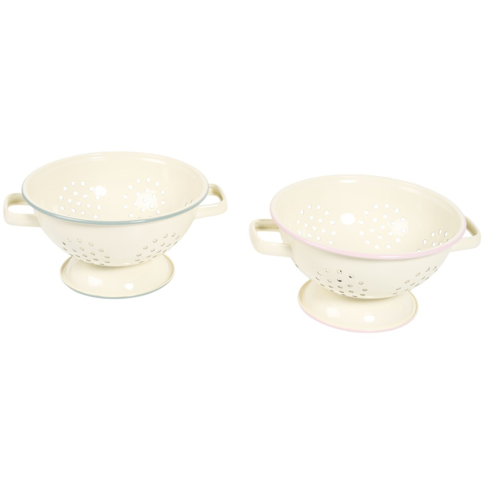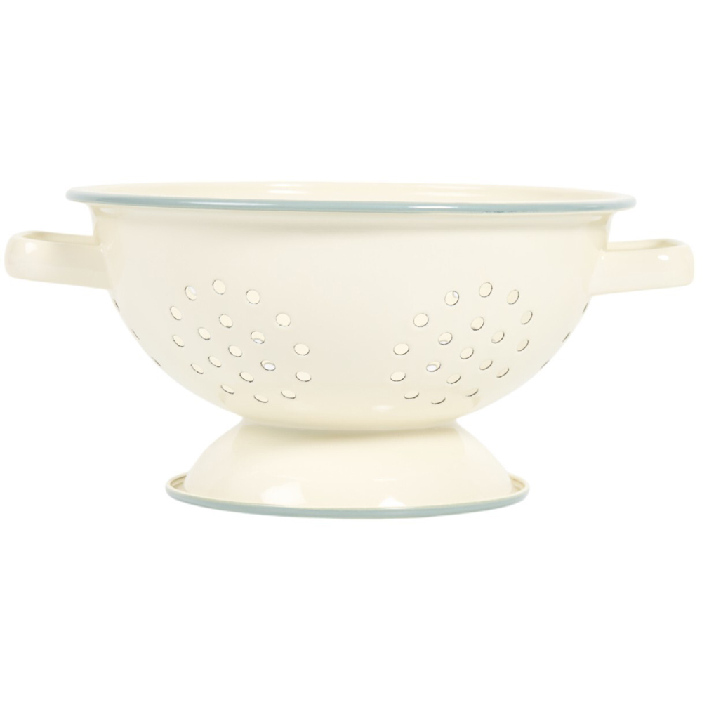 Add a touch of retro charm to your kitchen with the My Kitchen Medium Enamel Colander. Perfect for everyday prep, it's great for rinsing salad leaves, washing vegetables, or draining pasta with ease. Functional yet stylish, its cream body is accented by a contrasting rim in an assortment of sage or pink.