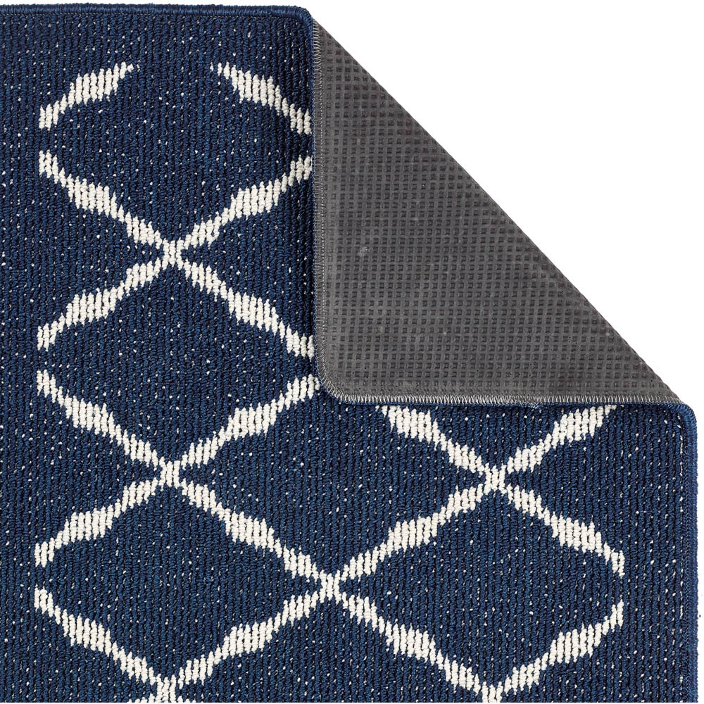 The Stain Resistant Arbor runner is the ideal, practical mat for any doorway, kitchen, and utility room. This has a navy and white diamond geometric design with a navy border, creating a very contemporary look to go with any interior style. British made to be long lasting, ultra-absorbent and washable with a non-slip backing, add this stain resistant runner to your space to protect your floors and add some extra style and comfort to your home. Care and Use: Machine washable at 30 degrees. Hang or lie flat to dry. Tumble drying not recommended.