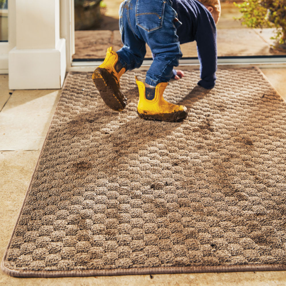 The brilliant new sculptured loop pile creates a texture to the design with high and low sections, with a classic taped finish, making it practical as well as beautiful. The Honeycomb design features an array of small hexagonal shapes in a seamless pattern showing high and low sections for a stylish look. 100% designed and made in the UK, stain resistant and hardwearing plus you can pop them in the wash for easy clean. Ideal for all areas of the home from utility rooms, kitchens, and hallways. Care and Use: Machine washable at 30 degrees. Hang or lie flat to dry. Tumble drying not recommended.