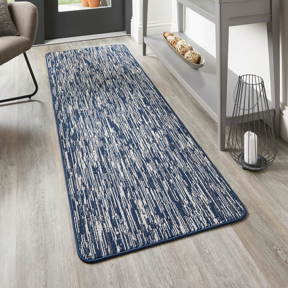 The Stain Resistant Broken Stripe runner is the ideal, practical mat for any doorway, kitchen, and utility room. It features a broken stripe design in white and navy, creating a very contemporary look to go with any interior style. British made to be long lasting, ultra-absorbent and washable with a non-slip backing, add a Stain Resistant runner to your space to protect your floors and add some extra style and comfort to your home. Available in a range of colours. Care and Use: Machine washable at 30 degrees. Hang or lie flat to dry. Tumble drying not recommended.