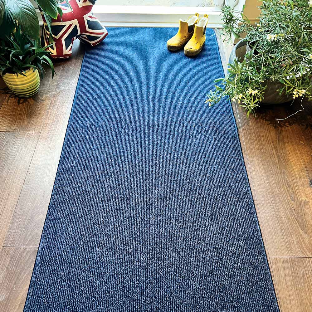 The Stain Resistant Plain Navy runner is the ideal, practical mat for any doorway, kitchen, and utility room. British made to be long lasting, ultra-absorbent and washable with a non-slip backing, add this stain resistant runner to your space to protect your floors and add some extra style and comfort to your home. Care and Use: Machine washable at 30 degrees. Hang or lie flat to dry. Tumble drying not recommended.