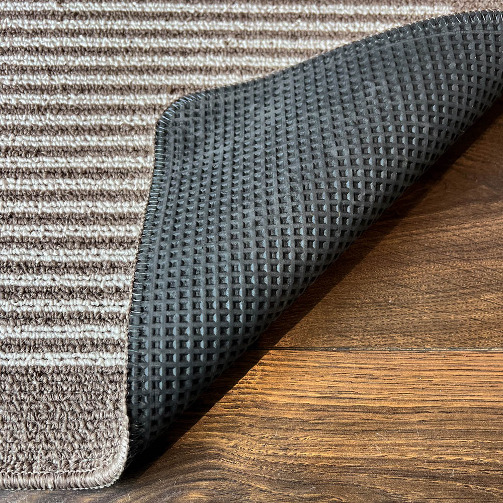 The Stain Resistant Stripe runner is the ideal, practical mat for any doorway, kitchen, and utility room. With thin white stripes on a stone background and a thick stone border around the edge of the mat. British made to be long lasting, ultra-absorbent and washable with a non-slip backing, add this stain resistant runner to your space to protect your floors and add some extra style and comfort to your home. Care and Use: Machine washable at 30 degrees. Hang or lie flat to dry. Tumble drying not recommended.