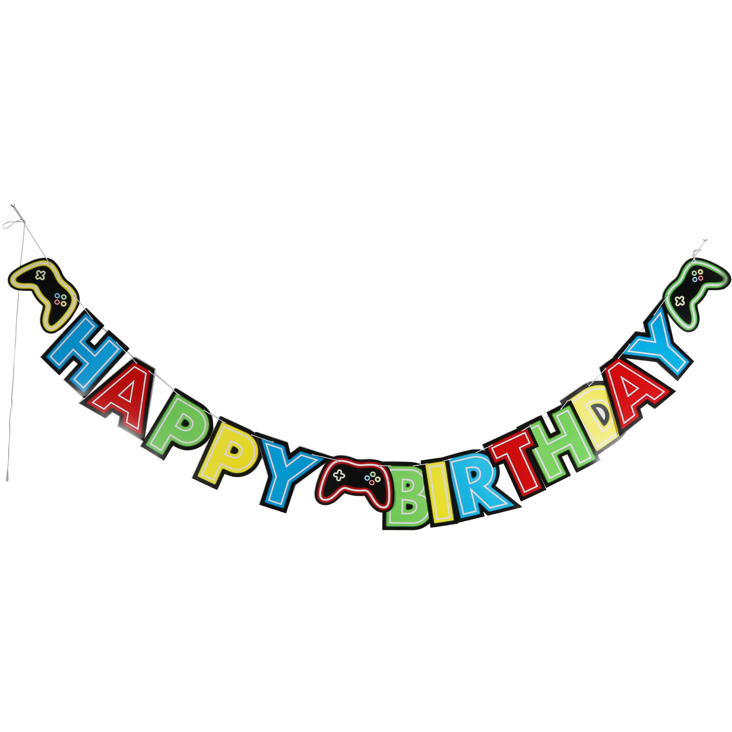 Celebrate in style with this stunning myParty Gamester Happy Birthday Banner 300cm. Perfect for any birthday party or celebration, this bunting features a stunning multicolour finish that catches the light for a magical display. The gorgeous banner showcases a gamer design with gaming controllers, making it perfect for creating a magnificently themed party for all to enjoy. This banner is sure to add a festive touch to your event.