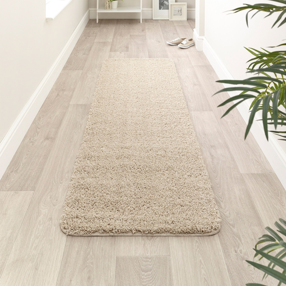 The My Rug collection contains recycled materials. Made with 100% polypropylene, these rugs are highly durable and feature a beautifully soft 10mm pile height. The stain-resistant properties make this rug ideal for busy households. It is machine washable at 40 degrees which makes it ideal for all around the home. The non-slip rubber latex backing makes it practical to use all over your home. Suitable for underfloor heating. VACUUMING: It is completely normal for your new rug to shed fluff at first, this is caused by excess fibres that attach during the spinning process. Once the rug has been vacuumed a few times, this will lessen and eventually stop. Regular vacuuming will help keep your rug looking new for longer and prevent dirt on the surface of the rug from getting embedded, making it much harder to clean. We would recommend the use of a suction vacuum cleaner to ensure that the pile of the rug isn’t damaged. SPILLS & STAINS: Any spills should be dealt with as soon as they happen to prevent permanent stains on your easy-care rug. Simply shake off any debris from the rug and wash on a low spin cycle up to 40 degrees. Hang or lie flat to dry. Tumble drying is not recommended.