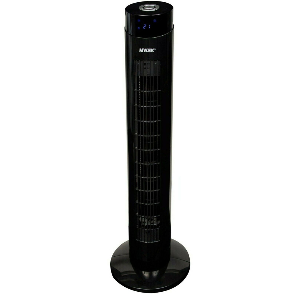 Keep cool in any part of your home or office with this superbly designed MYLEK Black Tower Fan 34 inch. With an ultra-slimline enclosed-blade design, it fits subtly into almost any décor. Use this fan’s oscillation function to circulate cool air around the room or to keep it stationary. With three speed settings to choose from - you’re always in control of your comfort. You can also use the 8-hour timer function to turn your fan on and off according to your schedule. This tower fan comes with a specially designed ioniser, which adds these refreshing negative ions to the air for a natural, relaxing cooling effect. With a simple control panel, clear LED display, and remote control, it’s easy for anyone to make the most out of this feature-packed electric fan. Stay away from distractions with its enclosed blades and noise-cancelling design.