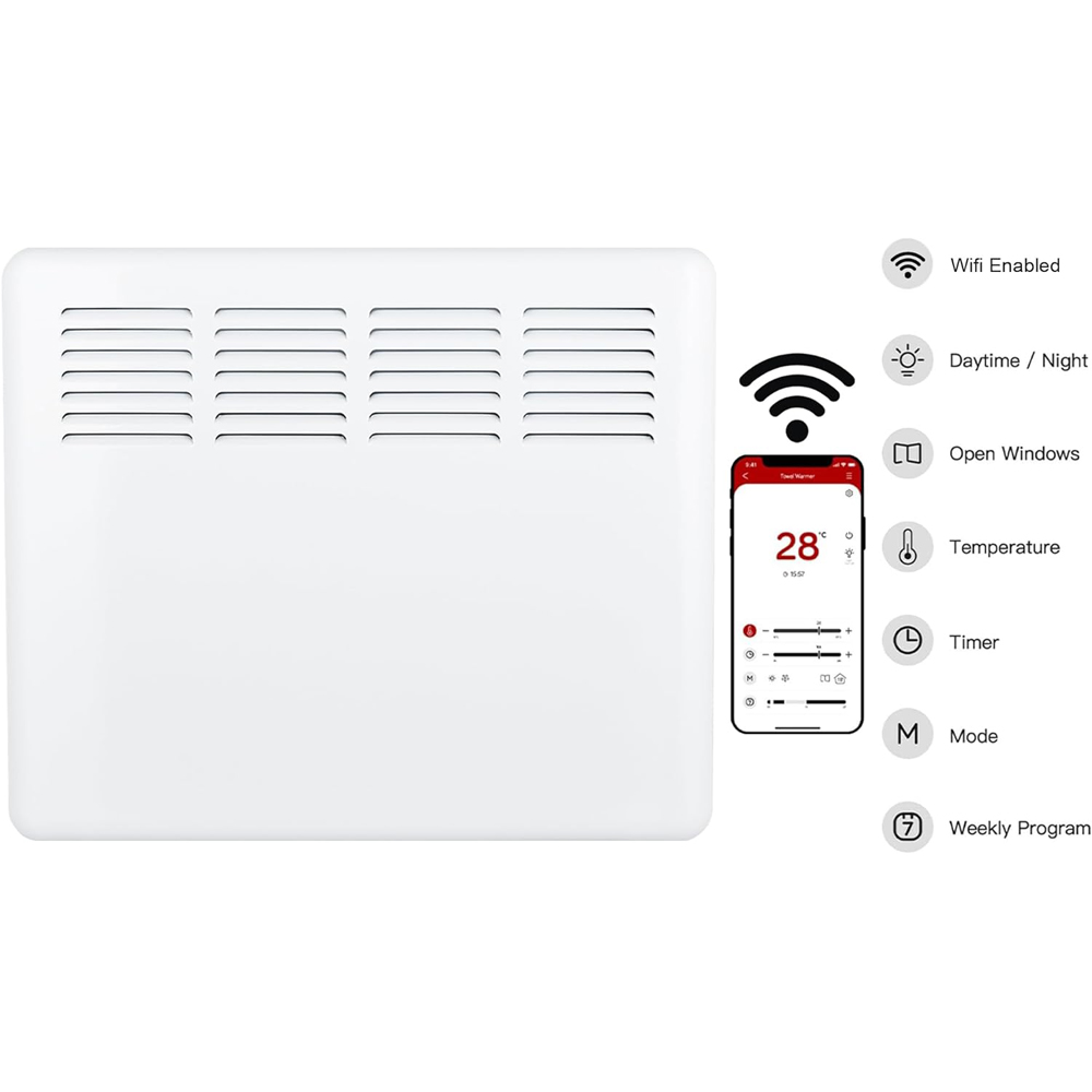 This Mylek App Controlled Panel Heater 1kW is designed to look super stylish and sleek. It’s the perfect addition to any room to keep it warm and cosy this winter. Thanks to the X shaped aluminium heating element inside the heater, it heats up quickly and retains heat well. This makes it more cost-effective and eco-friendlier with less energy being needed to warm the room you place the heater. Control your heater from anywhere in the world using the WIFI Tuya app from your Smartphone, Android or Tablet. From here, you can program the thermostat and 24/7 timer with ease, perfect for those who want their heating to come on before they arrive at work or when they arrive home after a long day. With open window detection, this smart heater can detect when a window is open and the heat is escaping. Once detected, the heater will then shut off to save energy and turn back on once the heater has been closed. Make this heater work for you with a choice of 3 modes (eco, comfort and anti-frost). This allows you to program the heater to work in a way that suits you, whether you’re wanting to be eco-friendlier or make sure your space doesn’t become too cold with anti-frost mode. Once your heater is installed by a qualified electrician, it can be safely used in bathrooms thanks to the IP24 waterproof rating. This heater can be used wall-mounted so that limited floor space is used or freestanding to allow you to place the heater wherever you wish. As well as the WIFI app, you can control this heater using the LED control panel. It’s super easy to use and perfect for those who may not be comfortable with technology. You can find the perfect temperature for you between 5-35oC thanks to the easily adjustable thermostat. It’s accurate to within 0.2 degrees so you can make sure your home or workspace is at the right temperature for you. This heater also benefits from a 24/7 timer so that you can control when the heater turns on and off to make sure no energy is wasted.