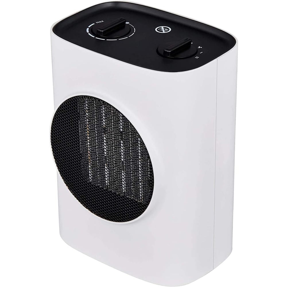 Stay comfortable as you work or relax with Mylek Ceramic PTC Fan Heater 1.5KW. The design is easy to use, sleek, stylish and robust. It also uses a hardwearing PTC heating element. Use this fan heater to stay cosy and warm in the winter, or cool and comfortable in the summer. With two heat settings, you can change between 750W and 1500W with ease. Featuring an adjustable thermostat, you can set this fan heater to a temperature that perfectly suits you. It's designed to only use as much electricity as necessary to reach your desired temperature. With tip-over switch protection and overheat safety protection, you can use the fan heater with complete peace of mind. It measures 21.4 x 13.5 x 17.4cm.