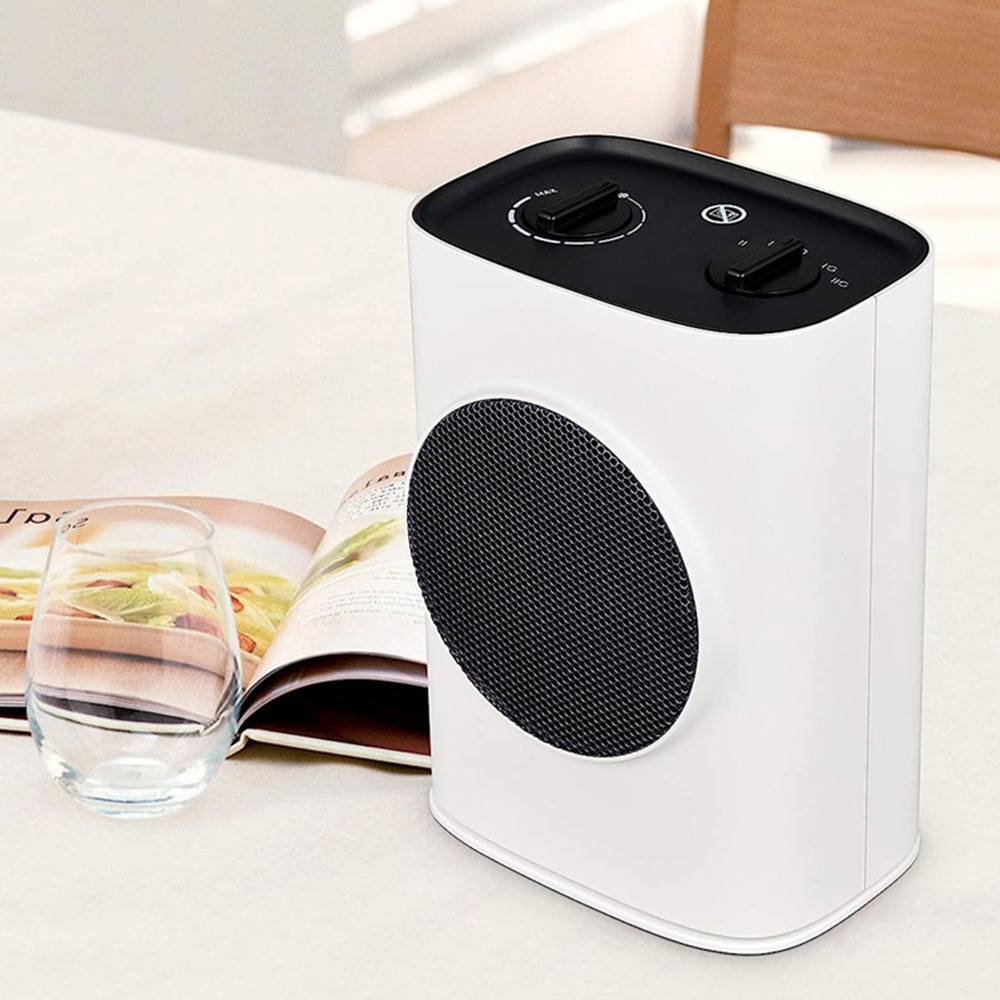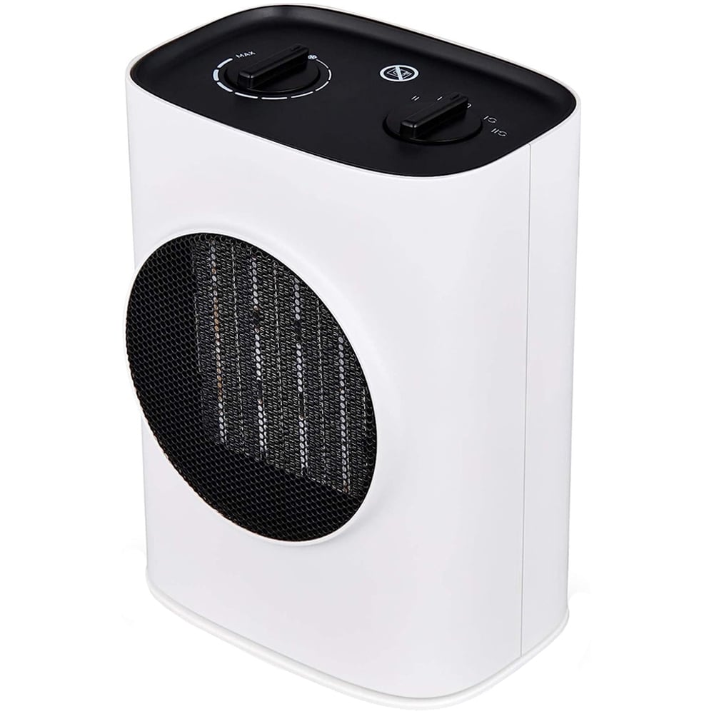Stay comfortable as you work or relax with Mylek Ceramic PTC Fan Heater 1.8KW. The design is easy to use, sleek, stylish and robust. It also uses a hardwearing PTC heating element. Use this fan heater to stay cosy and warm in the winter, or cool and comfortable in the summer. With two heat settings, you can change between 900W and 1800W with ease. Featuring an adjustable thermostat, you can set this fan heater to a temperature that perfectly suits you. It's designed to only use as much electricity as necessary to reach your desired temperature. With tip-over switch protection and overheat safety protection, you can use the fan heater with complete peace of mind. It measures 23.7 x 13.5 x 17.4cm.