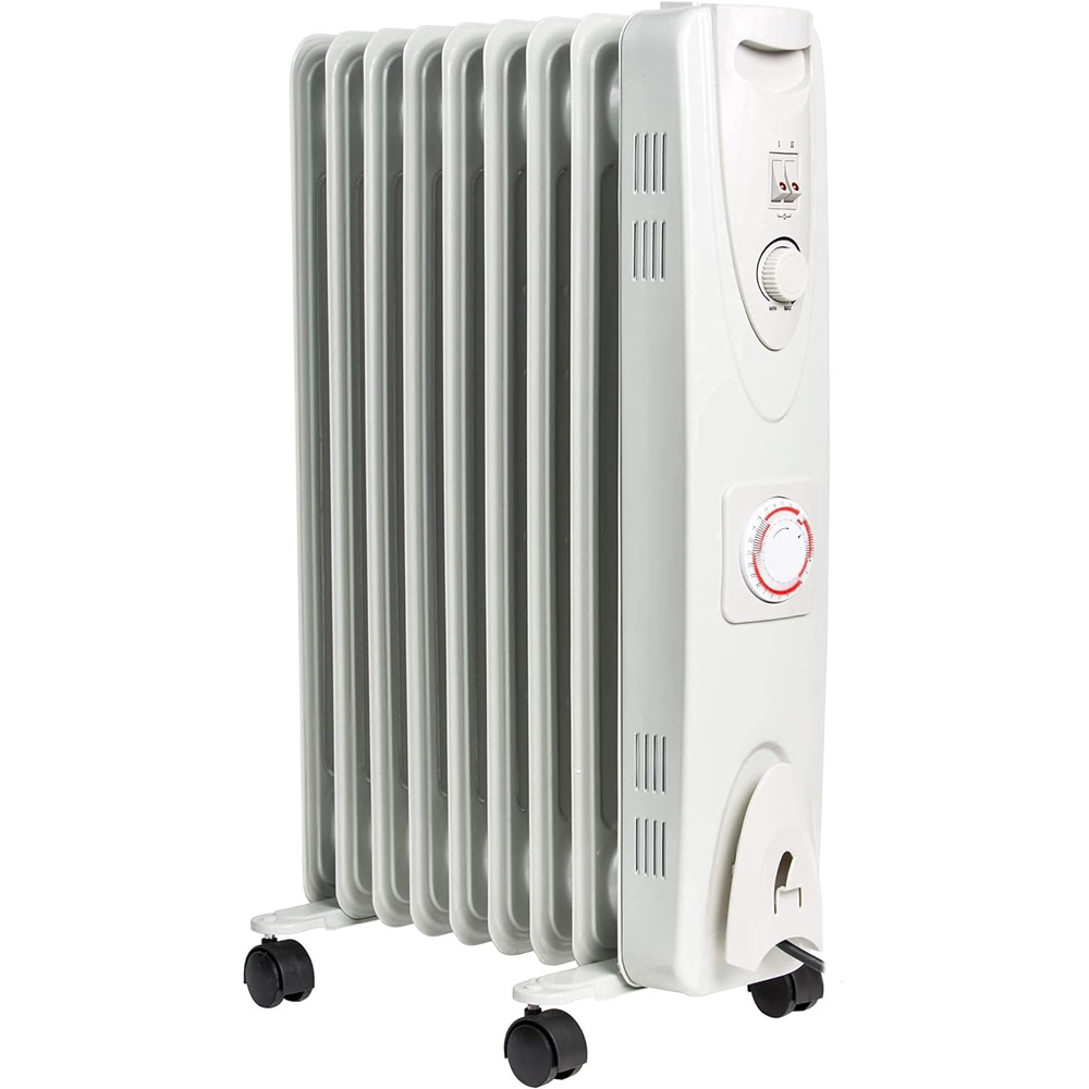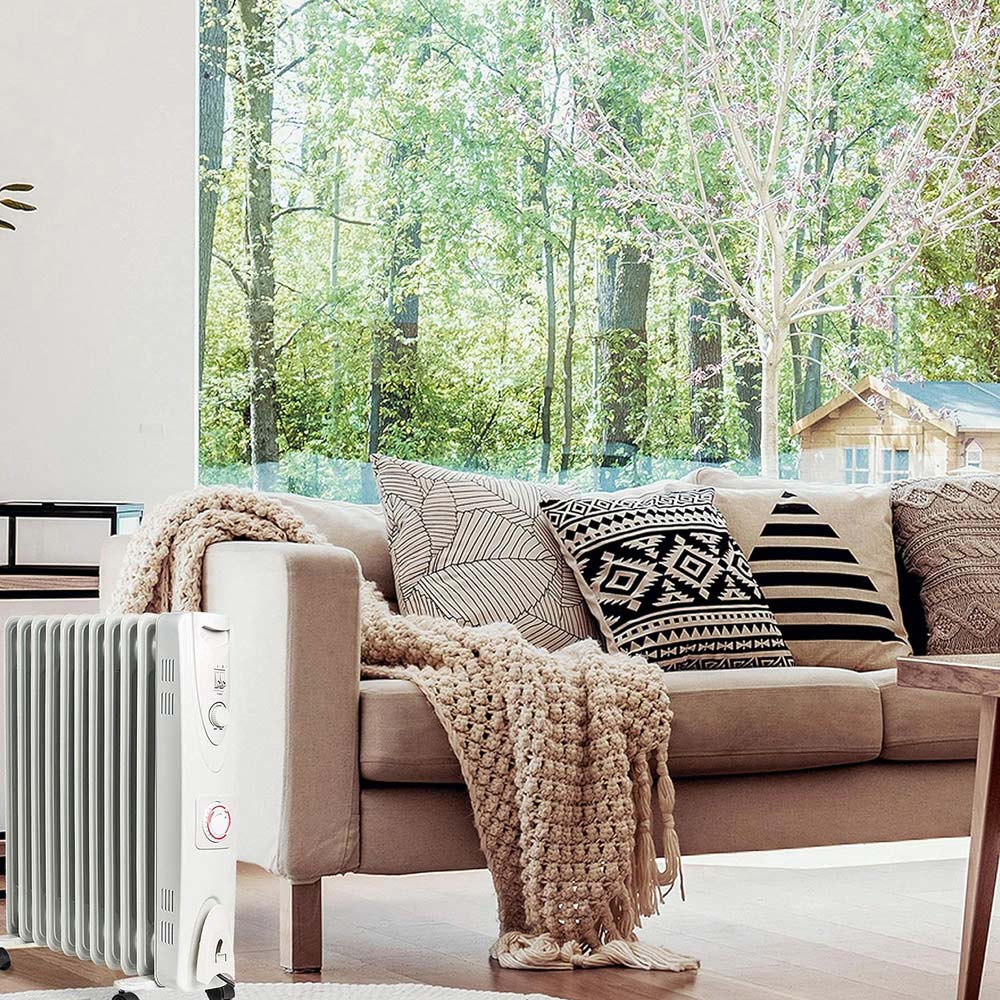 This Mylek Oil Filled Heater is extremely stylish, but also practical! It's perfectly suitable for living rooms, bedrooms, sheds, garages, offices and more - making it the perfect heater for multiple uses. With four wheels on the bottom of the heater, you can easily transport it around your home or workspace, ensuring you're never without a comforting heat source as you work or relax! This oil-filled radiator is controlled with an easy-to-use thermostat - making it super user-friendly. You can also use the 24-hour timer to control the heater, allowing you to choose when you want the heater to turn on and off with ease. The design of this Mylek oil-filled radiator is second to none. Using compact fins, the surface area is increased, as well as being filled with a thermally conductive oil. This special oil heats up quickly, but cools down slowly, allowing you to use the heater all night as you sleep - without worrying about how much energy it's using! As the oil is only used for conducting heat, it never needs to be changed or maintained. To ensure your style and decor is never compromised, this heater is sleek and compact. As a result, it looks modern and stylish so no matter where you choose to place it, it's sure to fit into any decor. This oil-filled radiator is extremely safe to use. It has a tip-over prevention feature, which makes sure that if the radiator is ever tipped over, the unit will immediately shut down and will only start to work again once it has been returned upright. It also has an overheat protection system - allowing you to use the radiator in your home, around children and pets without having to worry!