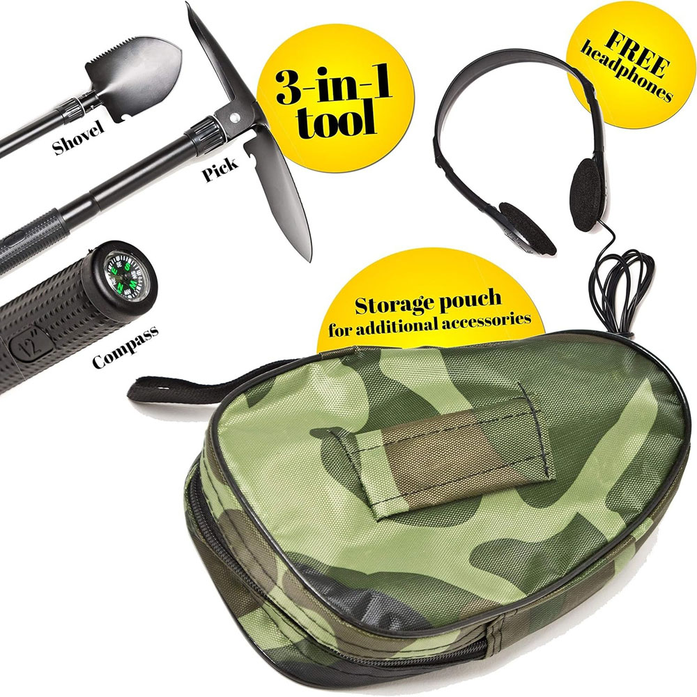 The Mylek’s metal detector is built with an adjustable stem and a 6.5” search coil. This allows you to adjust the metal detector to suit you. It is also perfect for those wanting to share their metal detector with their children. This MYLEK metal detector is robust and built to last. This is ideal for those wanting to use their metal detector regularly and in all weather conditions, as you can be sure this model will be reliable, and last you while you explore for hidden gems – no matter how harsh the weather may be! It’s important that you have everything that you need when you’re out hunting for hidden treasure and rare finds. To make sure that you’re ready to go as soon as you receive your metal detector, we’ve included a pair of headphones, a 3-in-1 tool (a shovel, compass and pick) so that you can get started straight away. To ensure you never have to call off a day of exploring due to the rain, we’ve ensured that our metal detectors are waterproof. So, if you’re out on a treasure hunting adventure and the heavens open, or you’re hunting in a water-heavy terrain, you can carry on exploring! Please note that this metal detector can only be used in shallow water. The strong and robust design ensures that this metal detector will last for much longer, and the casing provides you with a low battery indicator, so you never have to worry about it running out of charge without you being prewarned.