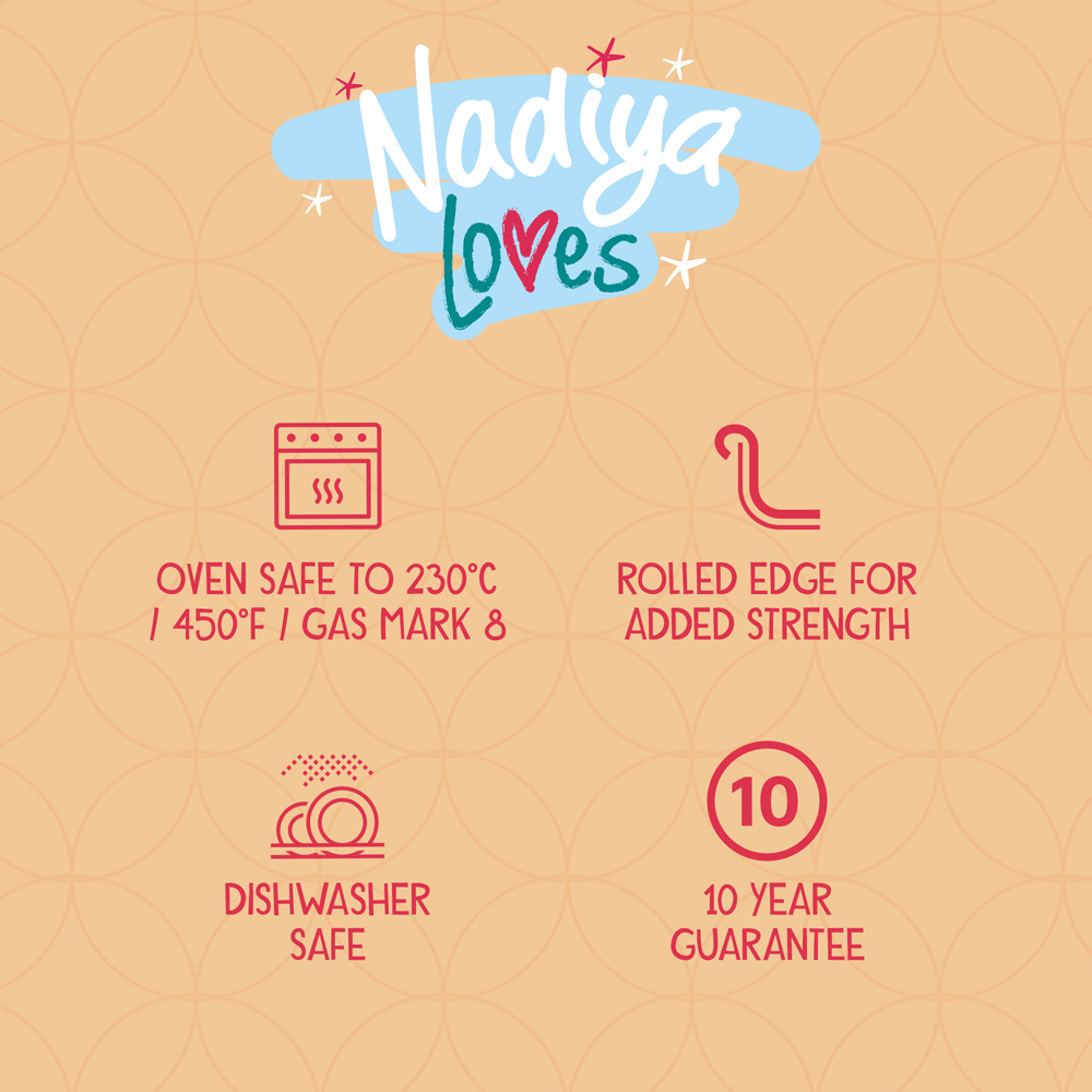 Indulge in a variety of culinary adventures and craft delectable creations with the Nadiya x Prestige 0.8mm 4 Piece Bakeware Set. This set includes a 12 cup muffin tin, a 9-inch square cake tin, a 9-inch round cake tin, and a 9-inch springform cake tin. The exquisite gold non-stick textured surface is just one of the numerous advantages of this product, as it prevents food from sticking and distributes heat evenly, resulting in flawless cakes and bakes. Furthermore, this bakeware set is dishwasher safe, saving you time on clean-up and allowing you to savour your meals with loved ones. Convenient internal measurements assist in selecting the appropriate tin for your recipe. With its heavy gauge durable steel construction, this bakeware range is oven safe up to 220 degrees Celsius, 420 degrees Fahrenheit, and Gas Mark 7. Rest assured, as it comes with a 10-year guarantee, enabling you to bake for your loved ones with complete peace of mind. This 4-piece bakeware set is also suitable for use in the refrigerator and freezer. Always remember to place the chilled or frozen bakeware into a cold oven, allowing both the bakeware and oven to heat together.