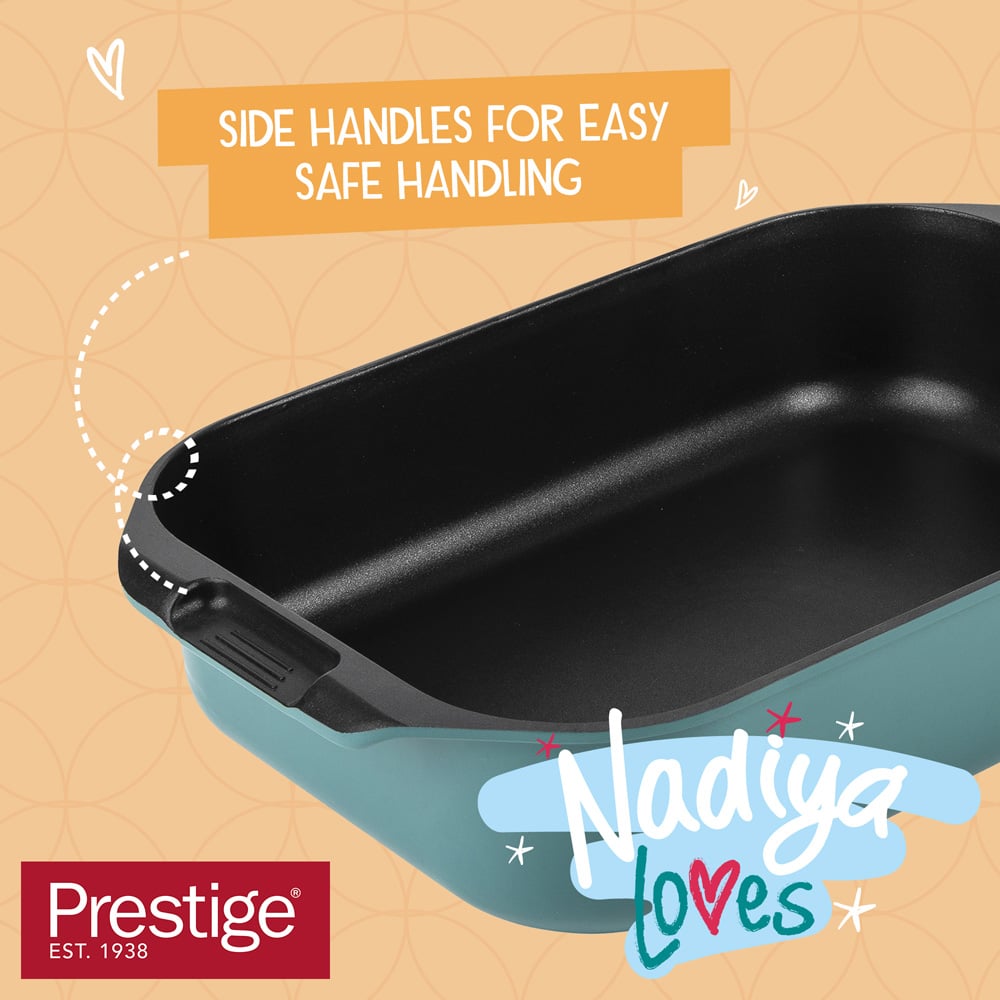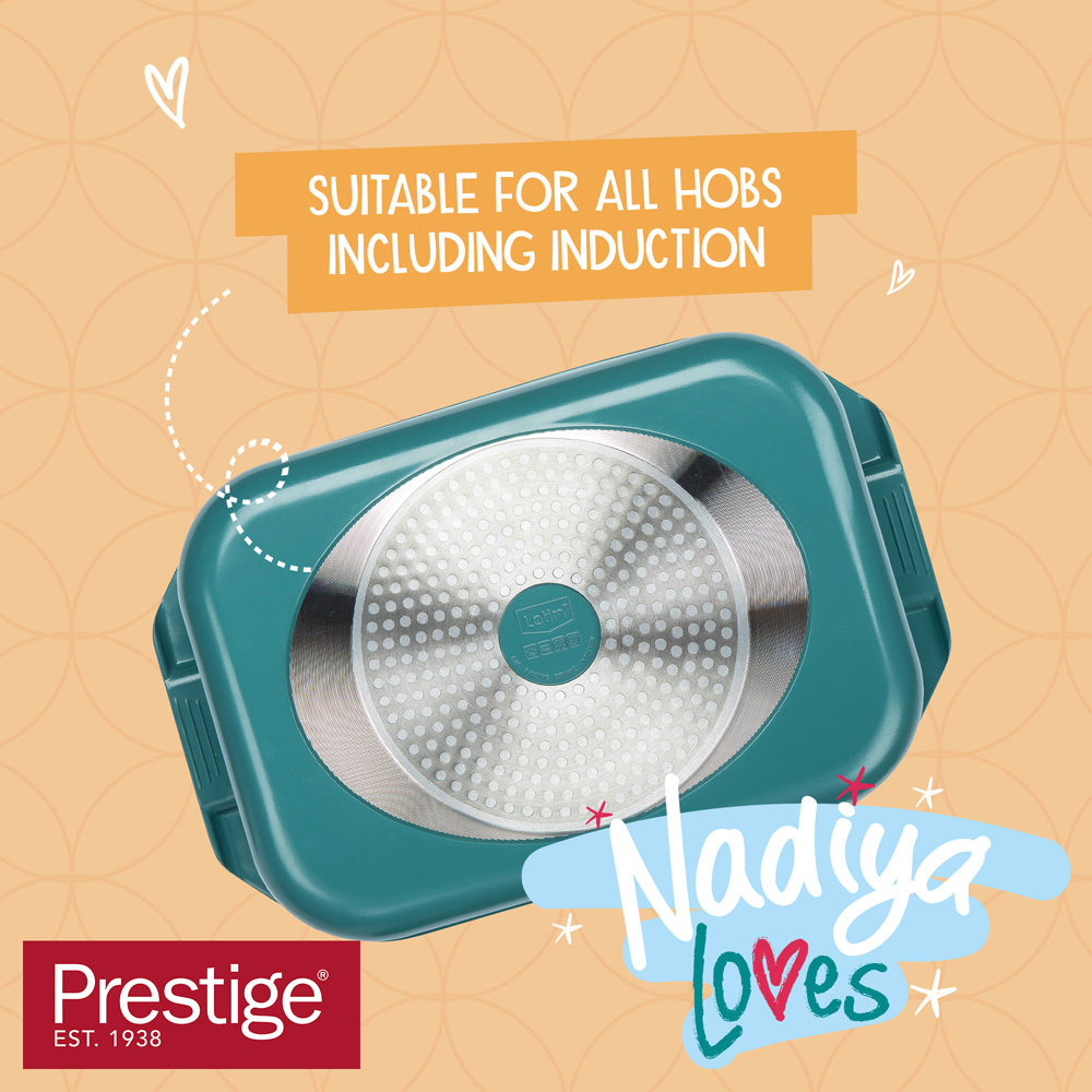 Prepare delicious meals for your loved ones using the Nadiya x Prestige 39 x 25cm Cast Aluminium Roaster. This sturdy roaster enables you to sear, bake in the oven, and finish off with a mouth-watering gravy on the stovetop. The cast aluminium body with an induction base heats up rapidly, saving both time and energy in the kitchen. Its generous capacity is perfect for cooking large family meals. Bid farewell to tedious scrubbing, as this non-stick roasting tray is coated inside and out with PFOA-free material. Additionally, the roaster features a textured surface that promotes optimal airflow, preventing food from sticking and ensuring even cooking. The robust cast aluminium body cooks food evenly and retains heat, while the deep capacity is ideal for family meals that can be served directly from the hob or oven to the table. The collaboration between Nadiya and Prestige is founded on shared values of family, simplicity, and the creation of enjoyable meals for everyone.