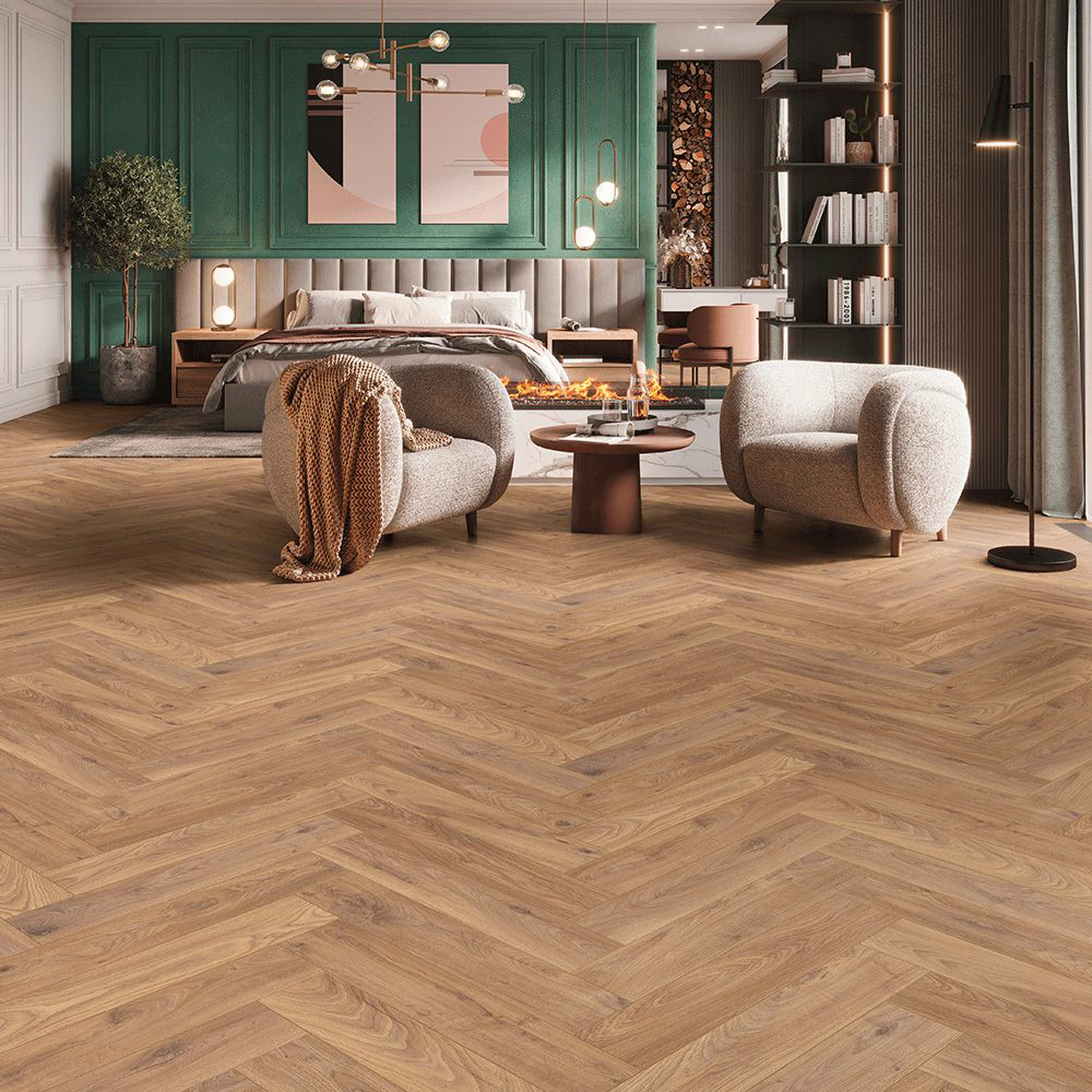 National Skirting Oak Firebrand Herringbone Laminate Flooring 11 Pack