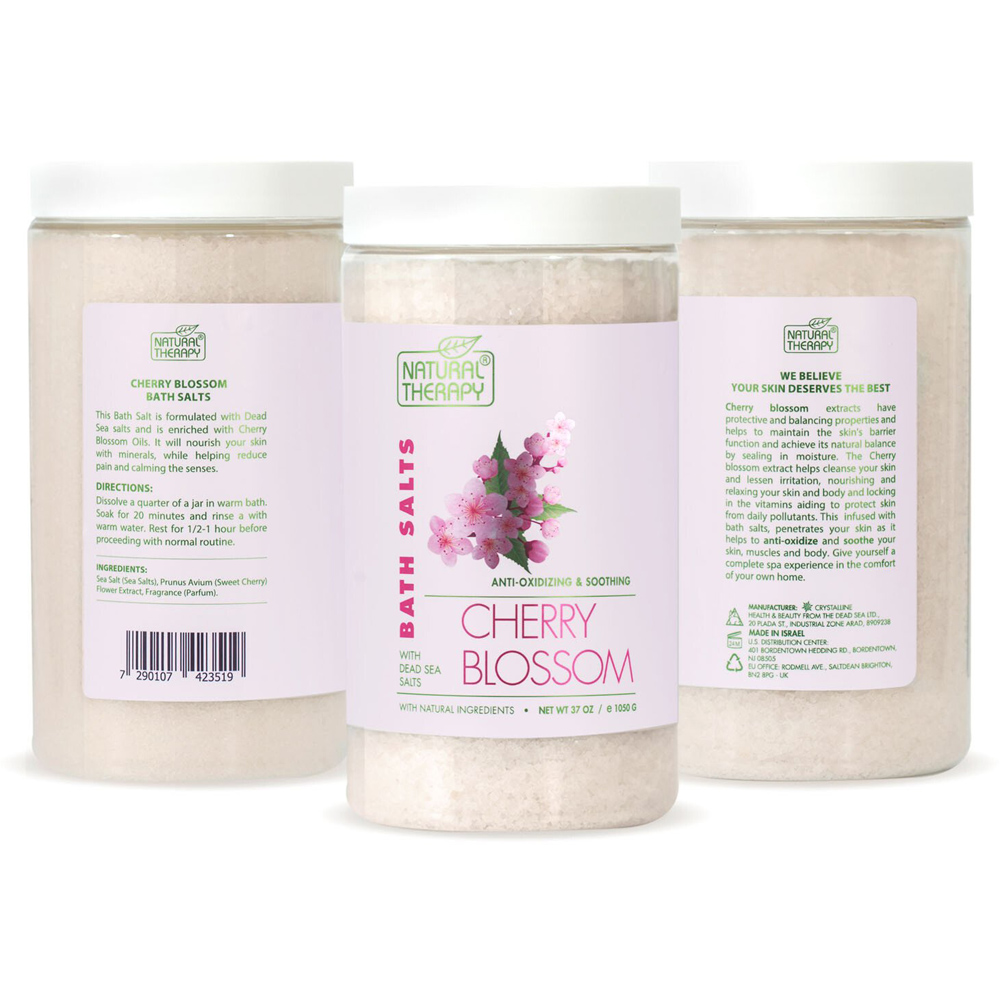 Natural Therapy Cherry Blossom Bath Salts have been enriched with floral cherry blossom oil to nourish your skin with minerals while helping reduce pain and calming the senses. Give yourself a complete spa experience in the comfort of your own home. Simply dissolve the salts in a warm bath and sink into the water to relax.