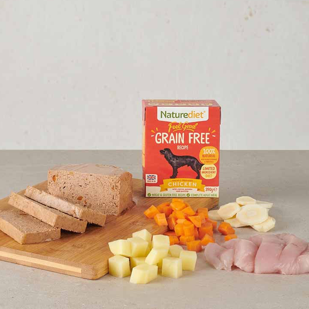 Give your adult dogs all the required nutrition with this feel good wet dog food by Naturediet. This is a natural and nourishing recipe made with freshly prepared chicken, carrots, potato and parsnip. The food is packed full of healthy goodness and provide a nutritionally complete meal that your dog will love. The grain-free recipe is simple, wholesome, and made with 100% natural ingredients to provide a gentle, nutrient-rich diet that’s ideal for fussy eaters, dogs with sensitive tummies and dogs requiring a low purine diet. Good for your dog and the planet! The dog food is made in Norfolk with British sourced produce to keep food miles low and packed in fully recyclable plant-based cartons made from sustainably sourced, renewable materials. Note: Store in a cool, dry place. Once opened please refrigerate and use within 48 hours. Size: 390g.