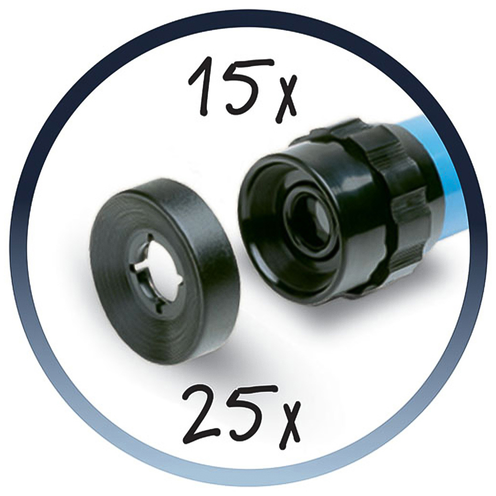 Telescope with optics with 5 elements for a perfect view of distant objects. Supplied with ocular-lens cover and tripod. Additional lens to reach 25 magnifications.