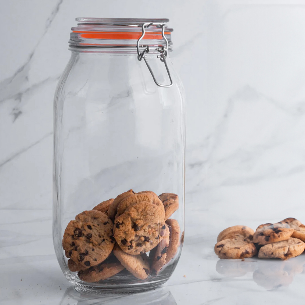 A set of 3 glass container jars with top clip lids is a versatile and stylish storage solution for the kitchen and pantry. These jars provide a secure and airtight seal, making them ideal for preserving the freshness of various food items. Each jar is made from high-quality, thick glass that is durable, clear, and resistant to scratches. The transparency allows you to easily see the contents inside. The lids feature a clip or latch mechanism for secure closure and includes a silicone gasket to enhance the airtight seal. A set of 3 glass container jars with top clip lids provides a practical, attractive, and durable solution for a variety of storage needs, helping to keep your kitchen organized and your food fresh.