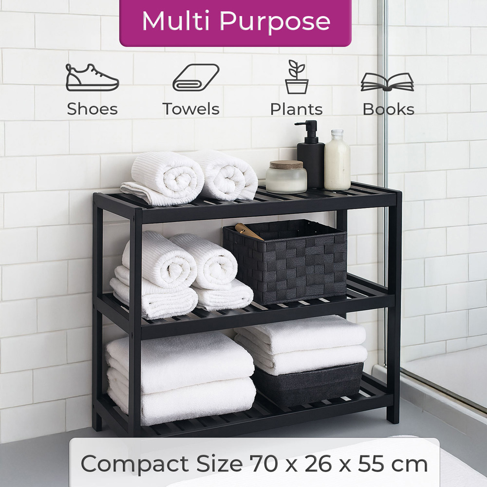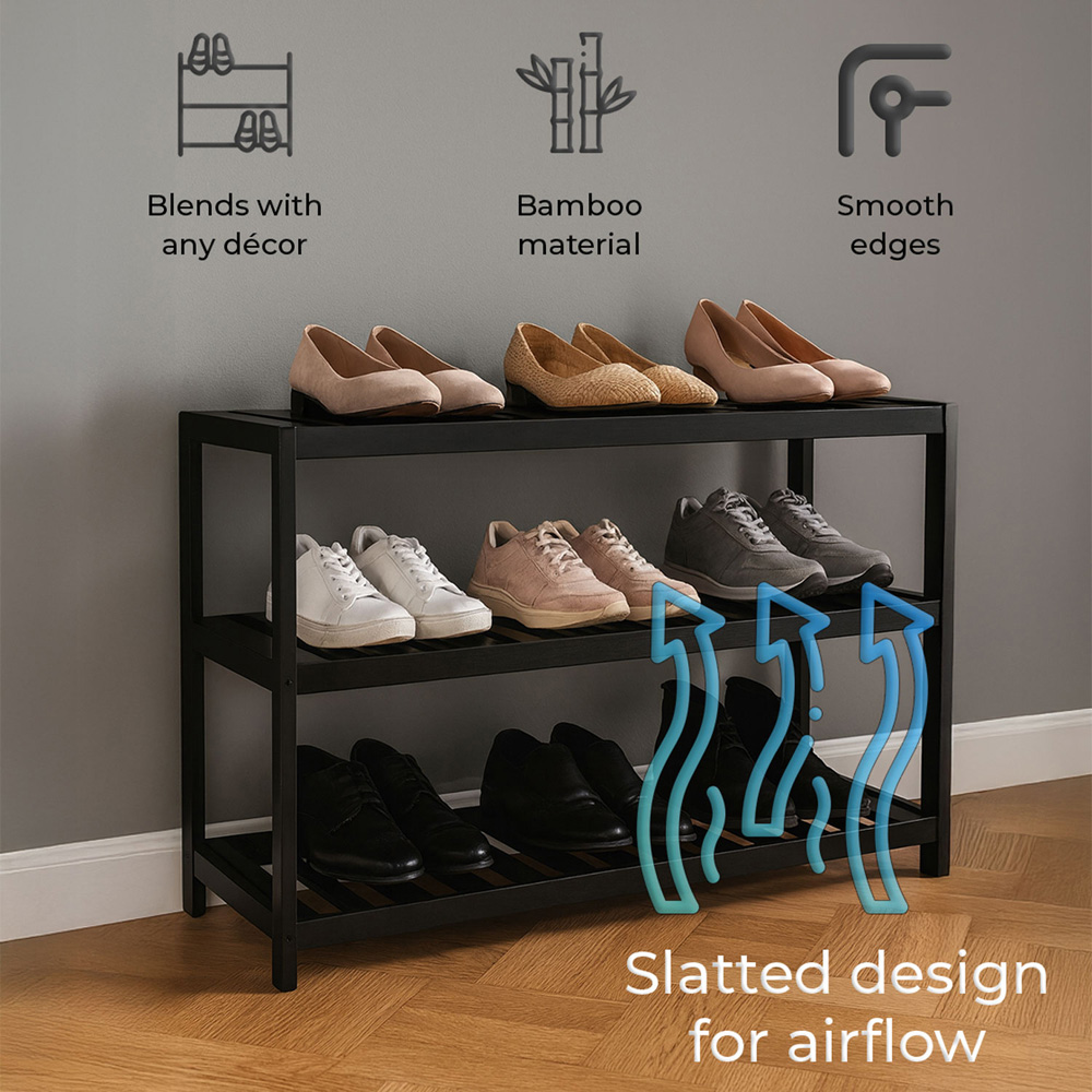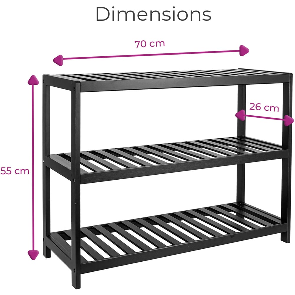 Neo 3 Shelf Black Bamboo Shoe Rack