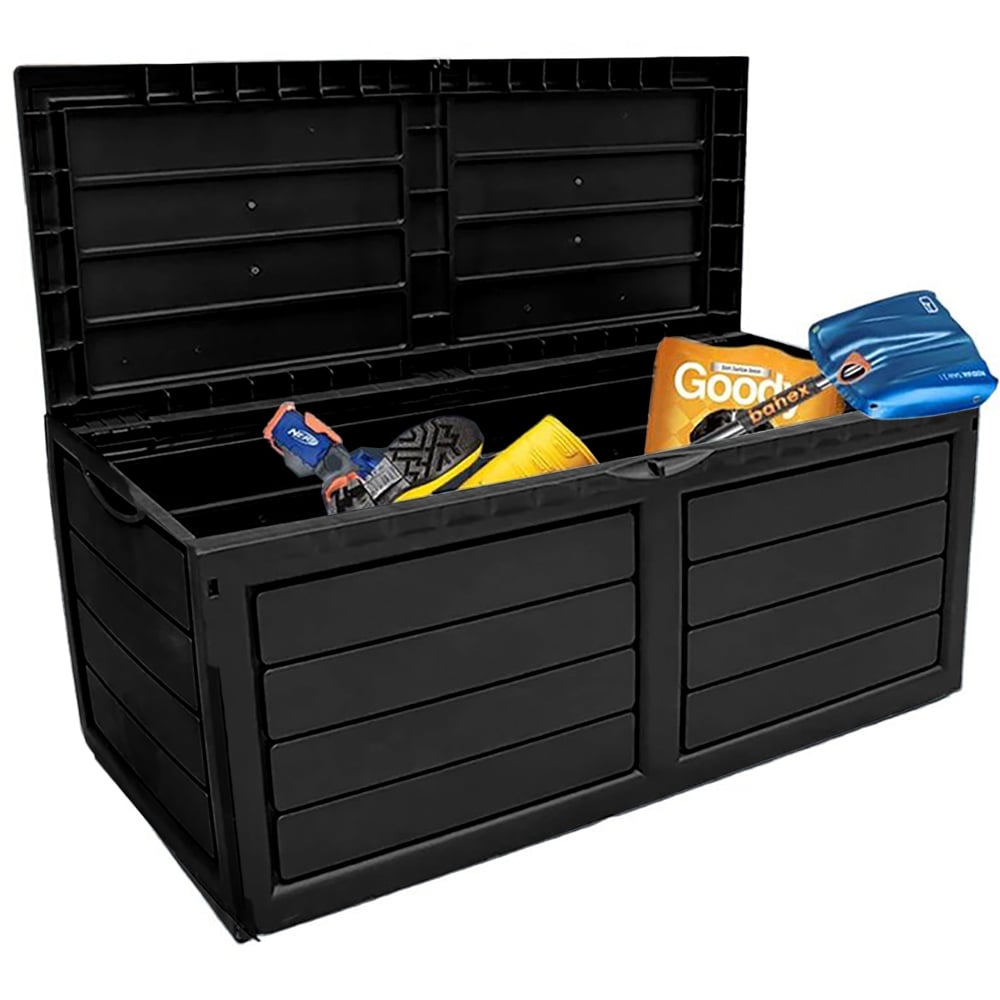 Introducing our durable and spacious outdoor storage solution - the Neo 320L Plastic Storage Container. Designed to withstand the elements while offering ample storage space, this container is a must-have for any outdoor setting. Crafted from high-quality, weather-resistant plastic, this storage container ensures your belongings stay safe and dry year-round. Its wood effect finish not only adds a touch of modern sophistication but also complements any outdoor decor seamlessly. With a generous capacity of 320 liters, this container is perfect for storing garden tools, patio cushions, sports equipment, and more. The spacious interior provides ample room to organise and protect your items from dust, moisture, and pests. Equipped with a sturdy lid that securely snaps shut, your belongings are kept safe and secure, while integrated handles make it easy to move the container wherever you need it. Additionally, its compact footprint allows for versatile placement in gardens, patios, balconies, or sheds without taking up too much space. Whether you're looking to declutter your outdoor space or simply need a reliable storage solution, the 320L Plastic Storage Container combines durability, functionality, and style to meet all your outdoor storage needs.