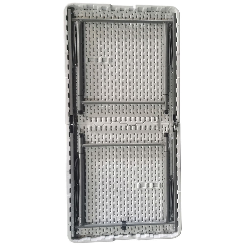 The Neo foldable heavy-duty table is suitable for both indoor and outdoor use. The table is made from high-density plastic with a powder-coated steel framework. It has a heavy-duty plastic table top with a stain and spill-resistant finish for easy cleaning and locking legs for event-long support and stability. It has a built-in carry handle for easy transport and storage. The easy-to-maintain and durable smooth surfaces are very easy to keep clean. Along with various other uses, these tables and chairs are ideal for the garden, parties, BBQs, market stalls, fairs and trade shows. The tables are easy to set up and fold away when not in use. A tubular metal frame offers exceptional strength and support, with the ability to bear up to 400kg of weight. Once your event is over, the table can be folded and locked and comes with a handle for easy transportation.