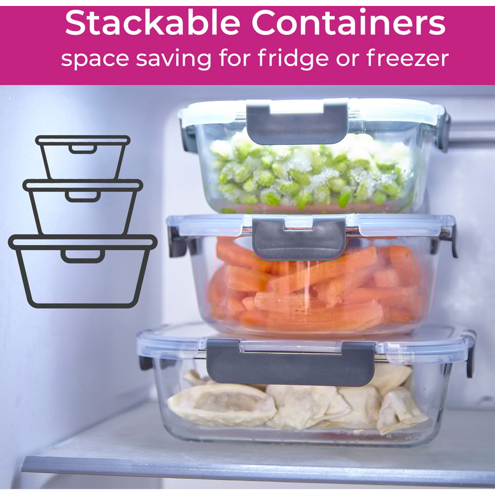 The Neo Glass Food Storage Containers are designed to provide a variety of sizes and shapes to accommodate all your food storage needs. Set of seven glass containers, they come with airtight BPA-free, clip-on lids for preserving the freshness of food. The glass containers are non-toxic, durable, and resistant to stains and odours. The Borosilicate glass food storage makes this safe and does not contain harmful chemicals like some plastics might. It is also less likely to leach into food, especially when exposed to heat. The glass material makes this more durable and resistant to scratches and stains than plastic containers. It is less prone to discolouration or retaining odours from previous meals. It’s easier to clean and maintain the original quality of the container over time. The transparency of the glass allows you to easily see the contents of the container, making it convenient to identify and organise food items in the fridge or pantry. These containers are suitable for storing both hot and cold foods. They can be used in the microwave, oven, refrigerator, and freezer, providing versatile options for all your food preparation and storage needs.