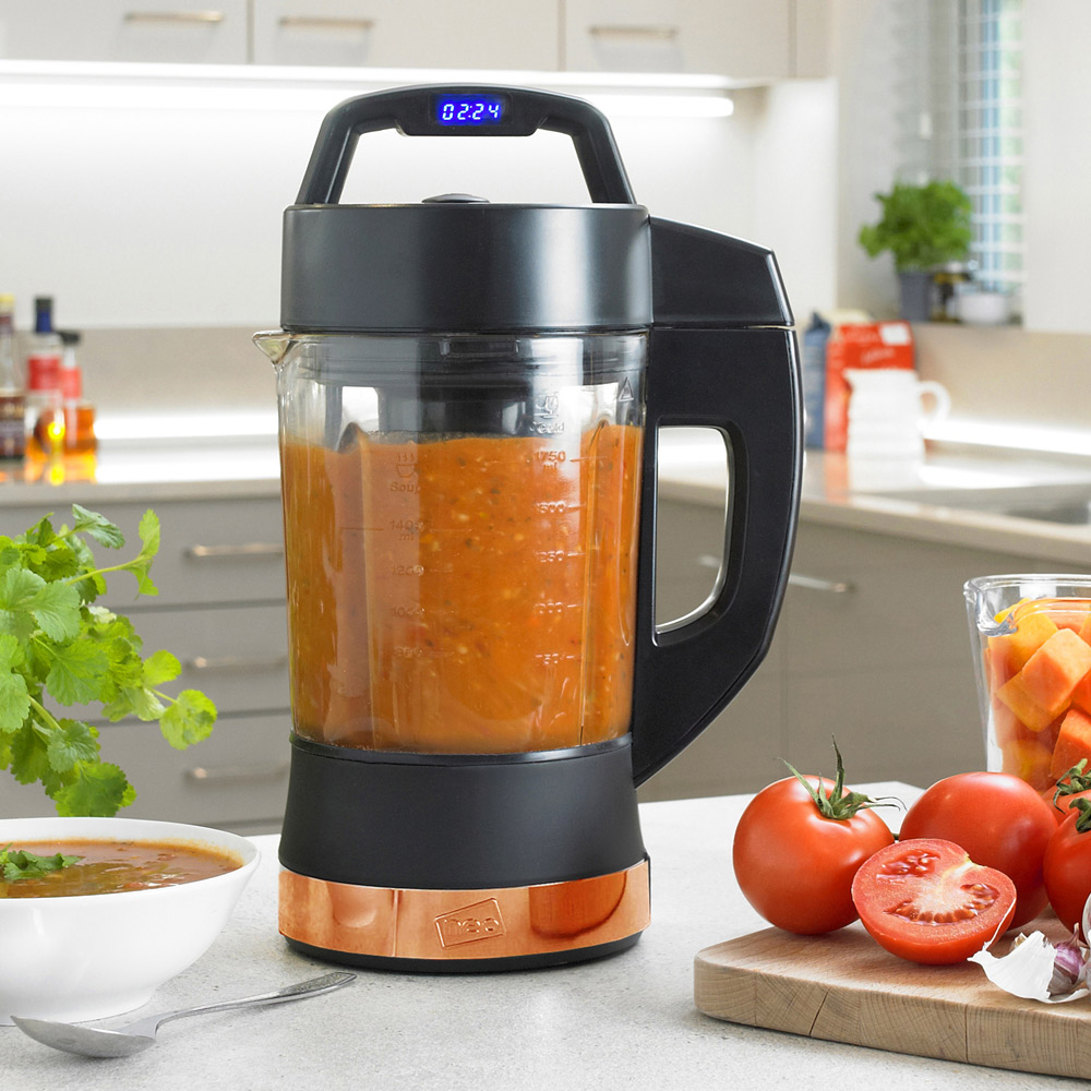 Make cooking easy with his Neo 4-in-1 Copper Stainless Steel Digital Soup Maker. This device not only allows you to make and heat soups in an hour but also lets you blend and juice to make the perfect smoothies or cocktails. With a powerful 300W blending motor, this soup maker makes a perfect addition to your kitchen. Apart from this, the integrated blue LED display counts down the program you have chosen to clearly show your progress at a glance. Easy to use, the soup maker comes with 4 functions for different textures and ingredients: chunky soup, smooth soup, blend and juice. Capacity: 1.75L boiling and 1.4L soup-making capacity. Size: 22.5 x 15.5 x 34.7cm.