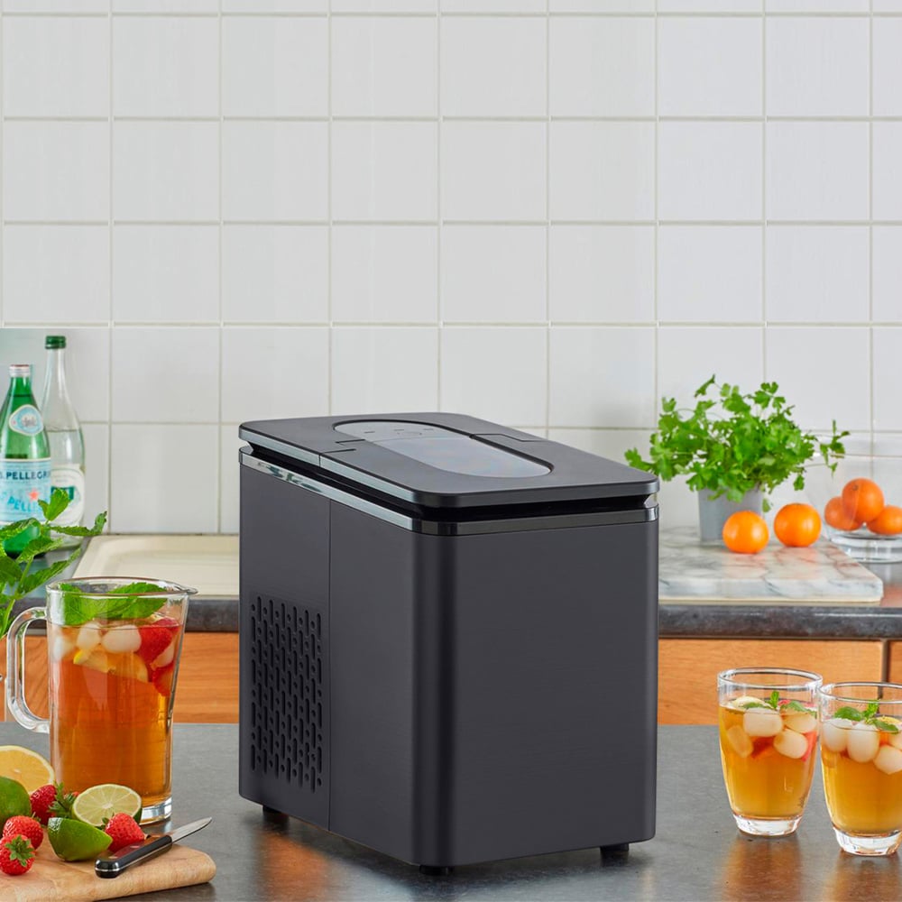 Create refreshing drinks and beverages with Neo Black Electric Ice Cube Maker. With this electric ice cube maker machine - you can make the best ice drinks, fruit smoothies and cocktails at any time you and your guests need. It produces up to 12kg of ice per day and 9 ice cubes per cycle. The built-in storage bin can store up to 1.8 L of water at a time while the machine can make ice cubes fast yet with low noise in the meantime. It starts an alarm when ice cubes are full or water is deficient as well. Specifications: Dimensions: 32cm x 24cm x 32 cm (L x W x H). Voltage: 220-240 V. Power: 110 W. Water tank capacity: 1.8 L. Ice production capacity: 12kg/24 hours.