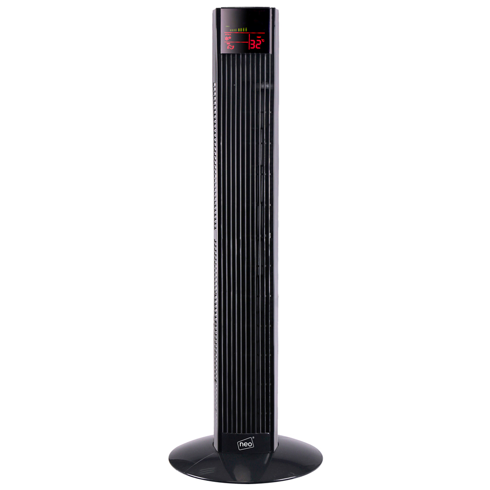 Cool down fast with this Neo Black Tower Fan 36 inch. Stay cool in the heat and enjoy a regular breeze from the 90-degree oscillation – keeping you refreshed at every angle. Designed in black, the slim tower design takes up hardly any space and is easy to assemble. The vivid LCD screen with three speed settings, three fixed and three oscillating, along with a 12-hour timer allows you to control the temperature as you need. Complete with a remote control, it is perfect for use in shops, gyms, offices, homes and workplaces.