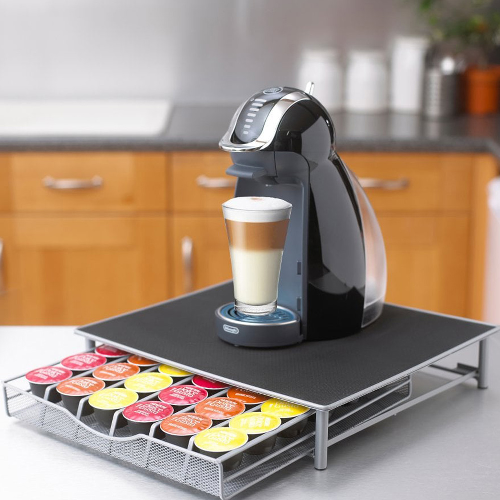 - Non-slip rubber mat surface with pull-out drawer for capsule selection