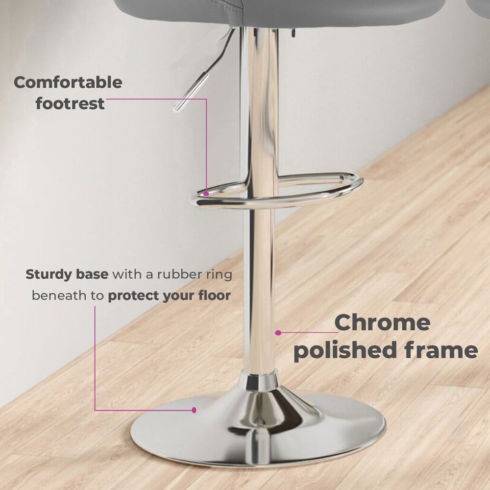 Neo Dark Grey and Chrome Leather Bar Stool Set of 2