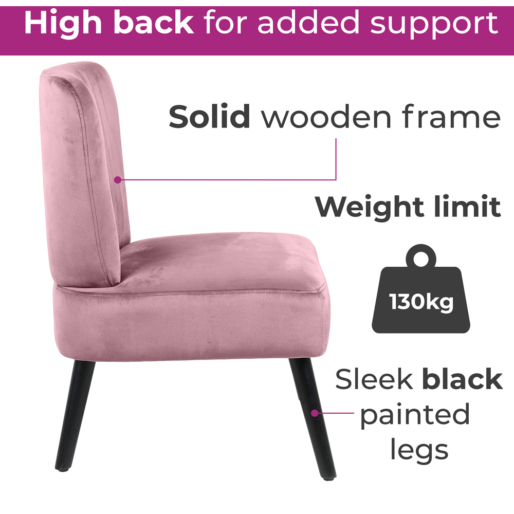 The Neo Dusky Pink Velvet Shell Accent Chair with Black Legs, upholstered in crushed velvet with dusky pink colour, is perfect for a lounge, dining or bedroom setting. A great feature for any home, the extra padded cushioning in the seat and backrest make it very comfortable. The accent chair comes with deep cushioning on the seat and back, providing comfort and style. This gorgeous scallop fluted back chair adds a touch of luxury to any room with stitched channels, a solid wood frame, and sleek black-painted legs. Constructed from premium quality materials, the chair delivers superior comfort and durability, which makes it perfect for daily use. Solid wooden legs ensure that the chair is also sustainable and long-lasting.