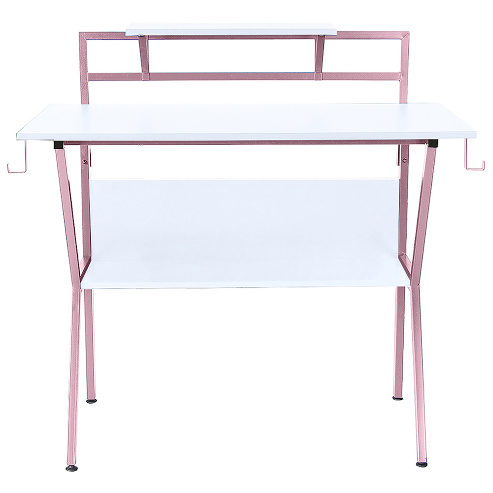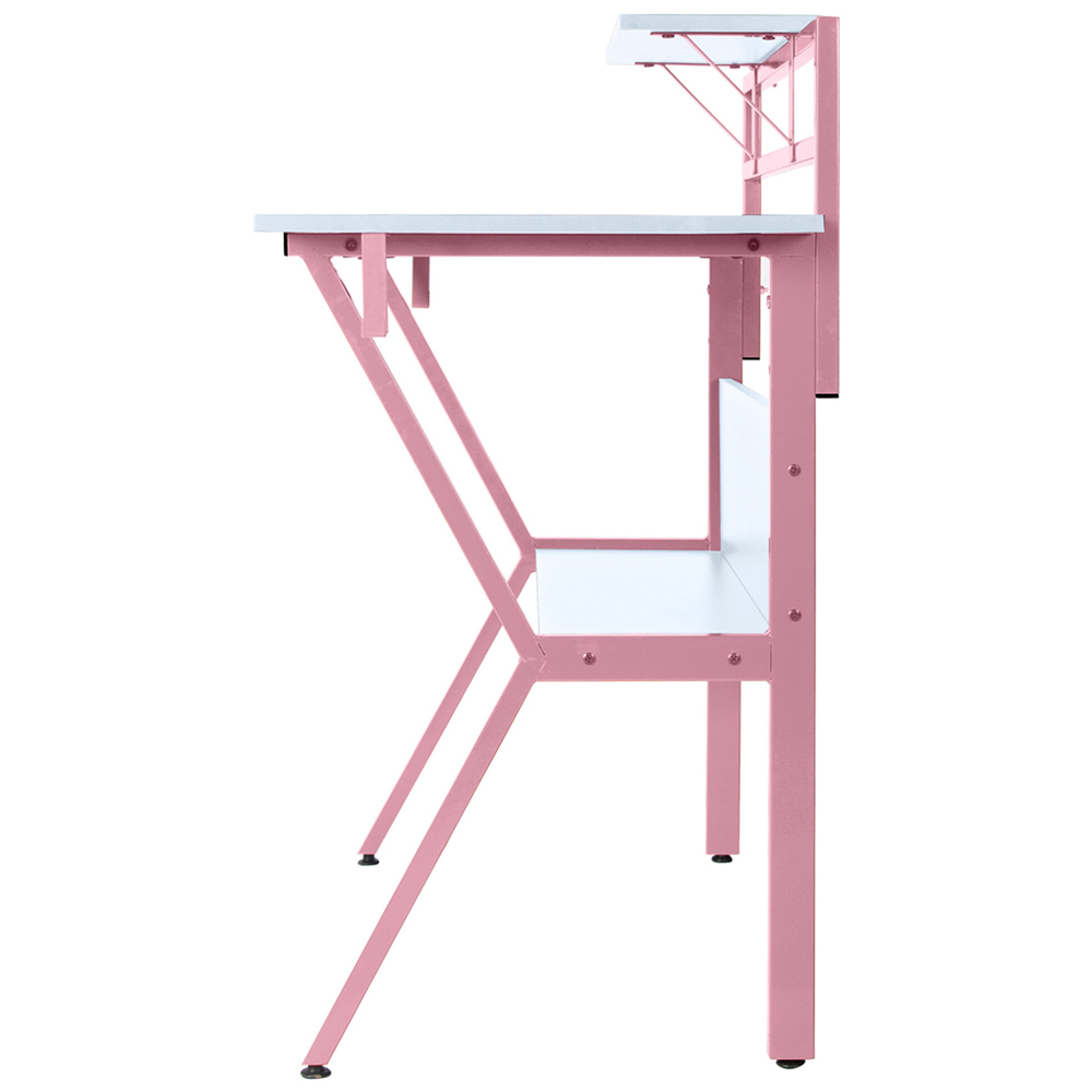This Neo Ergonomic 2-Tier Gaming Desk Pink is a stylish and spacious desk for all your computer and gaming accessories. This large 2-tier desk is designed for all the gamers out there. The large desktop provides plenty of space to place your electronic devices, such as keyboards and headphones. Perfect as a computer desk, office desk, gaming table, writing desk, study table with 2 headphone hooks in your office, bedroom, living room, or study room. It provides you with an enjoyable gaming experience. This desktop with a steel carbon fibre texture offers you ample room for a laptop, PC, gaming keyboard, or other gaming gear and ensures that you have enough space to work or play with comfort. The monitor riser and open storage shelf allow for more desk space for working and entertainment. Built-in monitor stands to keep your monitors at eye level for perfect viewing and reducing neck fatigue in the game.
