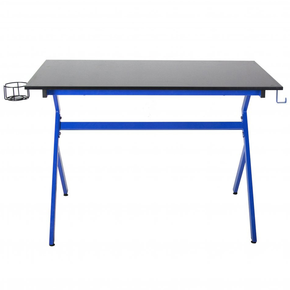 The Neo Ergonomic Computer Gaming Desk Blue is a stylish and spacious PC office desk for all your computer and gaming accessories. This large gaming computer desk is designed for all the gamers out there. The large desktop provides plenty of space to place your electronic devices, such as keyboards and headphones. It is suitable for offices and games. The monitor and notebook can be accommodated easily, and you can enjoy the large operating room. The table top made of steel carbon fibre table surface offers an excellent feel and is waterproof, non-slip and scratch-resistant. This gaming table has 2 cable management holes to organize your cables, headphone hook and cup holder. The powerful R-shaped design provides more support and stability than others for a stylish look and stability. Adjustable foot pads allow for height adjustments to keep the table stable on uneven ground.