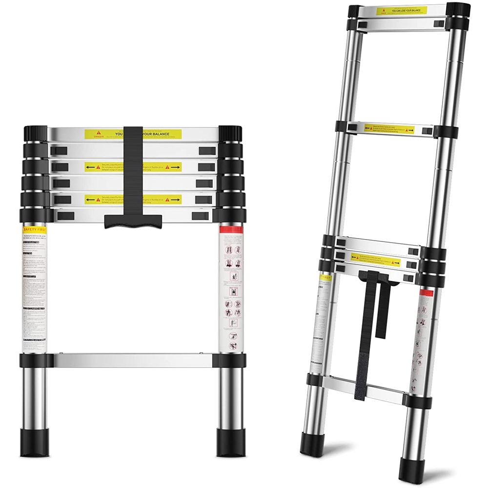 The Neo 3.2 metre telescopic ladder is a portable ladder that can be extended or collapsed by sliding sections of the ladder within one another. This design allows for easy storage and transportation. It can be easily stored in tight spaces such as cupboards, cars, attics, utility rooms, sheds or storage rooms. The ladder can be extended to various heights, providing flexibility for different tasks. This adjustability is a useful feature, especially when you need to reach different heights during a project. The ladder is lightweight and easy to carry, which is convenient for individuals who need to move the ladder from one location to another. The telescopic mechanism allows for smooth extension and retraction of the ladder sections, making it simple to set up the ladder quickly and safely. This ladder is suitable for a variety of tasks, including home maintenance, painting, accessing shelves, and more. The ladder is made from sturdy materials like aluminium or other lightweight but durable alloys, ensuring it can support the user safely. When using a telescopic ladder, it’s important to follow the manufacturer’s instructions for proper extension and usage. Safety precautions should always be taken when working with any type of ladder, including ensuring a stable footing, maintaining a three-point contact with the ladder, and not exceeding the weight capacity.