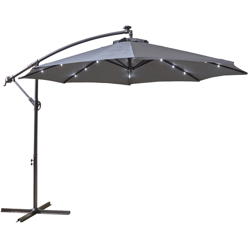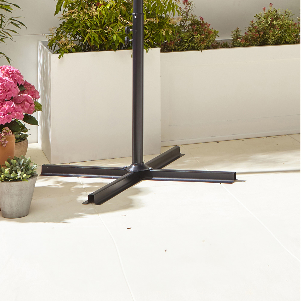 Stay and relax outdoors in the cool shade of this Neo Grey LED Light Parasol with Base. Simple to use, it features an easy-to-use crank handle to open the parasol and a lock feature to keep it in place. The parasol is topped with a grey canopy made from water and UV-resistant material and has air vents to keep the air circulating when open. The canopy also features 24 LED lights with a switch and solar panel to help illuminate your outdoor space on a summer evening. Designed with a cross base for free-standing use, it also comes with a water base, which provides added stability to your parasol. Plus, it also includes a weather-proof cover to protect from the elements when not in use. Looking for a way to keep your parasol secure and protected and enjoy some shade? Check out our selection of parasol bases, designed to keep your parasol in place while you relax and parasol cover to keep them protected.