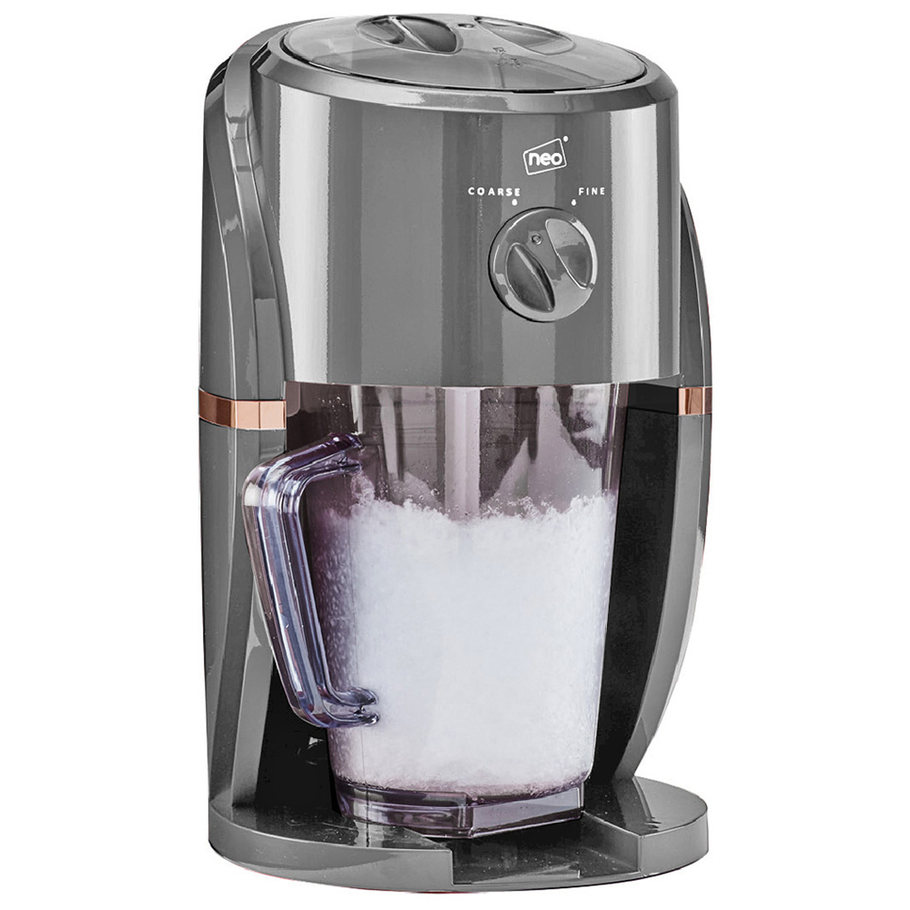 Entertain your guests with Neo Ice Crusher Slush Machine. From ice-cold slushies to frozen cocktails, enjoy a huge range of drinks. With two grinder settings - it crushes and grinds ice. You can choose either fine or coarse shaved ice by turning the dial on the front of the machine. The built-in stirrer and measuring jug keep the ice constantly moving to prevent it from sticking together and mixing in your syrups and flavours. Use your ice crusher for cocktails as well as all sorts of delicious cooling drinks like iced coffee, fruit flavour slushies or sweet snow cones. It is s covered by a 1-year manufacturer’s warranty.