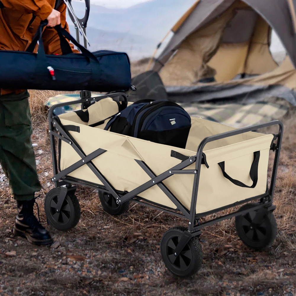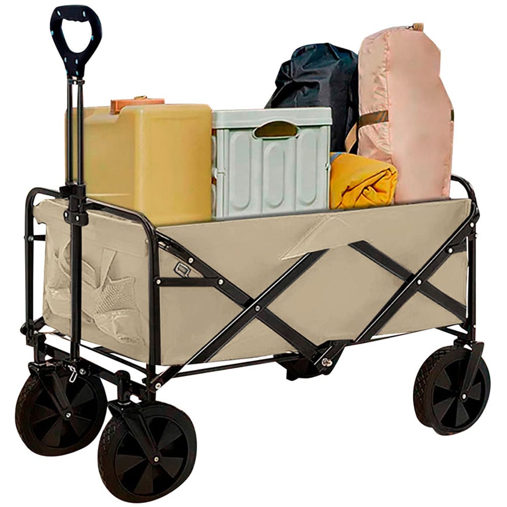 The Neo pull cart is a portable and versatile device designed to assist in transporting various items. Constructed with a sturdy metal frame, it provides durability and support for carrying loads. A long, ergonomic handle is attached to the frame, allowing the user to comfortably guide the cart, which can pull out at 90°. The telescopic handle adjusts to individual needs, making it a more comfortable option for moving heavy or bulky items. Equipped with 7 inch durable PVC wheels suitable for most terrains, the two front wheels feature 360° manoeuvrability that facilitates smooth movement. With a foldable design, it allows for easy storage and transport, fits conveniently in a cupboard, garage, or car when not in use, and includes handle straps. The strong metal frame can carry up to 150kg, and the platform is equipped with sides to prevent items from falling off during movement, along with two mesh bottle holders. This pull cart is versatile and can be used for a variety of purposes, providing a convenient solution for transporting groceries, luggage, gardening supplies, or other items without the need for carrying everything by hand, saving time and effort.