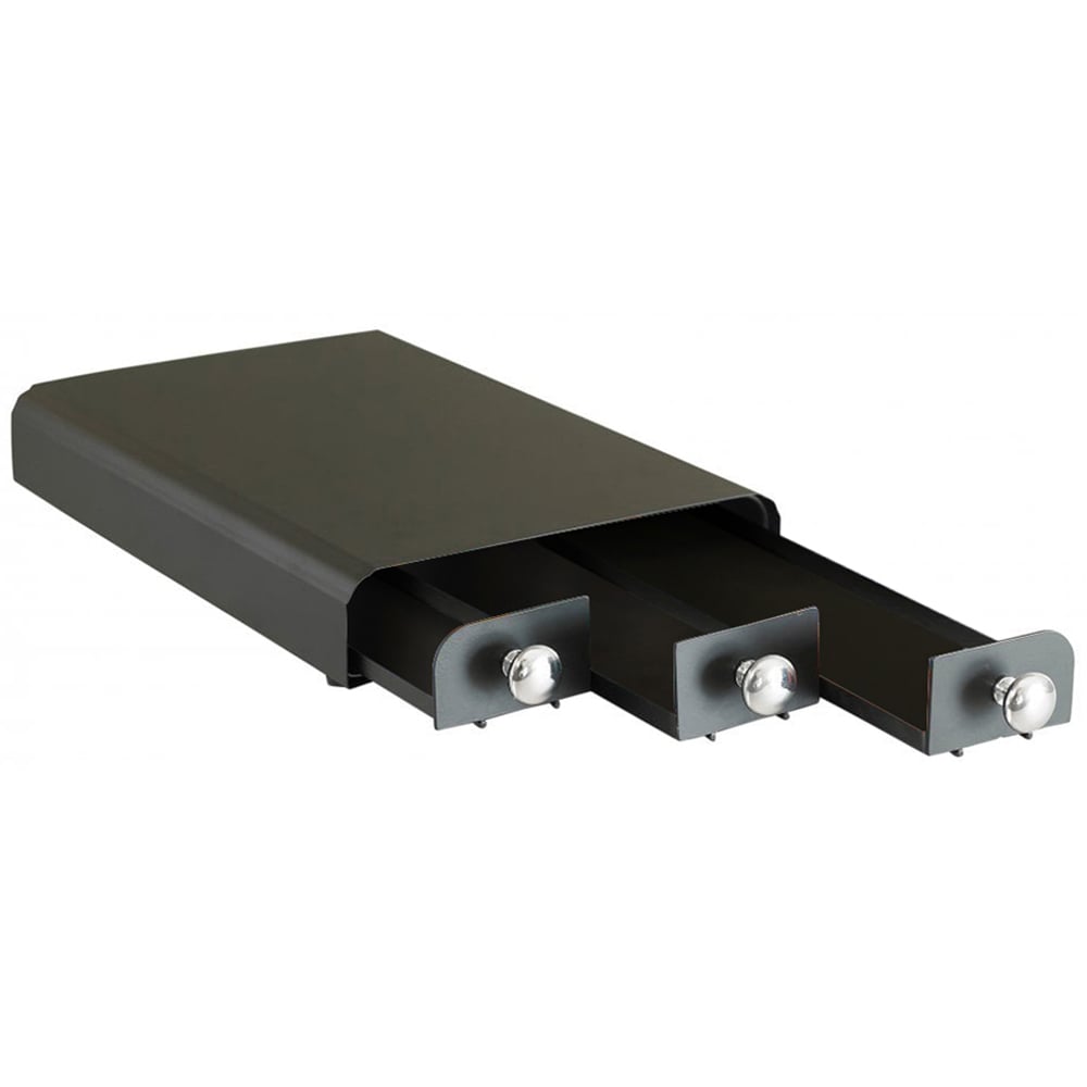 Make a perfect kitchen addition with this Neo Nespresso Coffee Machine Stand. This coffee machine stand includes three convenient pull-out drawers. Each drawer comes with two sections and can easily store 60 pieces of Nespresso capsules. Featuring a stylish carbon steel frame with a black coating it makes a stylish add-on. With a strong and durable steel frame, it can also be used as a stand for a coffee pod machine. Size: 41 x 26 x 6.4cm.