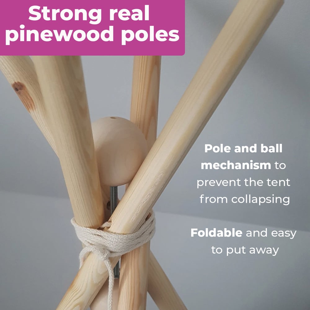 This teepee gives your child a cosy place to lounge, sleep, enjoy role-playing, relax and play with friends for hours of fun. A snug place to read story books, creating great childhood memories. The play tent comes with a user manual for easy assembly. Four wood poles are fixed together with a push-in connecting piece. Its door can be draped over the sides to stay open. There is a pouch inside for easy storage of toys and books. It comes with stylish bunting! It can be dissembled for easy cleaning. Water temperature must be below 40℃.