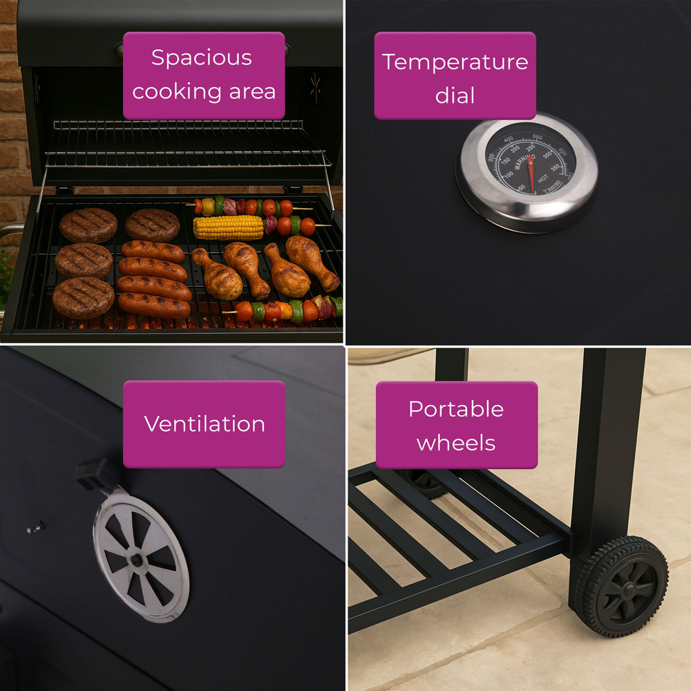 Transform your outdoor gatherings with this stunning and reliable charcoal grill, where exceptional design meets outstanding functionality. Imagine hosting a lively cookout or an elegant garden party, effortlessly grilling juicy steaks, flavourful sausages, and fresh corn on the cob in a spacious cooking area that accommodates all your favourites at once. With an adjustable charcoal tray for precise heat control and a built-in temperature gauge for flawless cooking, you'll impress your guests every time. Stay organised with a convenient side shelf for tools and condiments, while the portable design lets you effortlessly move the grill anywhere in your garden. Plus, cleanup is a breeze with a removable ash tray, ensuring you can focus on what matters most, enjoying great food and memorable moments. Elevate your outdoor cooking experience and make every BBQ an event to remember.