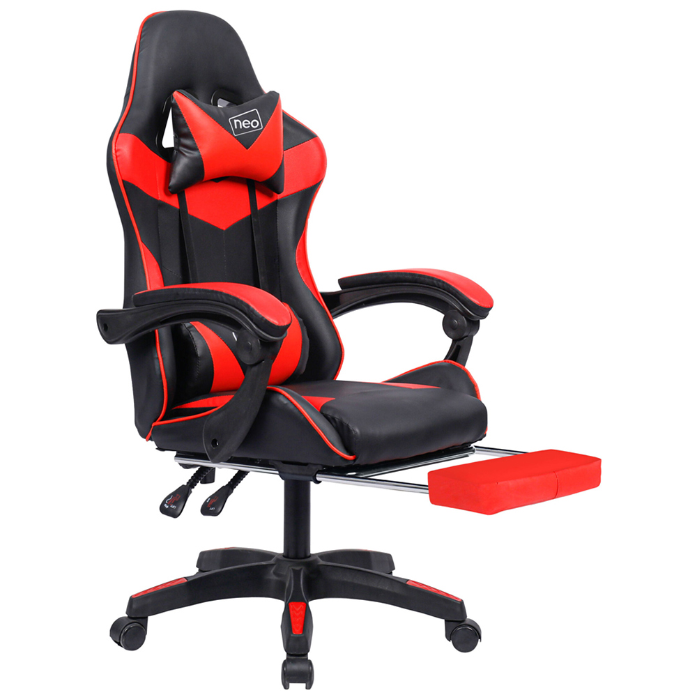 The deluxe Neo Leather Gaming Chair is made with high-quality PU leather with a built-in footrest. The Neo gaming chair combines multiple adjustable features, luxurious materials and Ergonomic design for comfort, with lumbar and headrest support. The Neo chair supports a new level of comfort for gaming, studying and the working office environment.