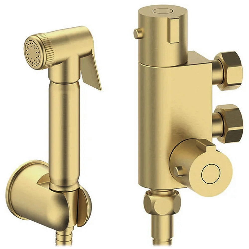 Nes Home Brushed Brass Bidet Douche Spray Kit with Mini Thermostatic Bar Valve