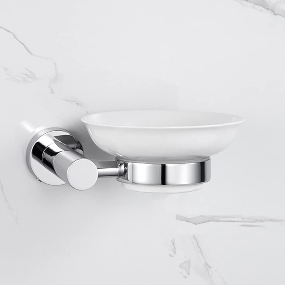 Nes Home Chrome Finish Ceramic Round Soap Dish with Holder