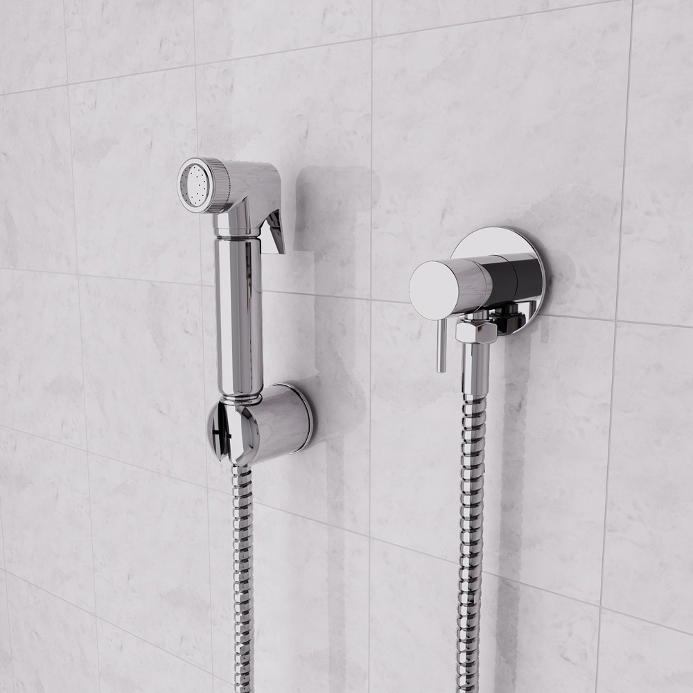 Introducing the handheld chrome bidet spray kit, the perfect addition for a superior clean after using the toilet. Made from high-quality brass with a stunning chrome finish, this kit combines style and functionality. It features an ergonomic handle and a powerful spray nozzle for effective cleansing. The included holder provides convenient storage, while the shutoff valve allows easy water flow control.